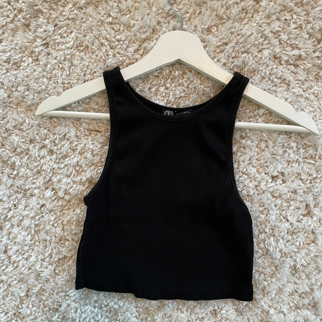 Säljer en stilren svart ribbad linnetopp från Zara.
