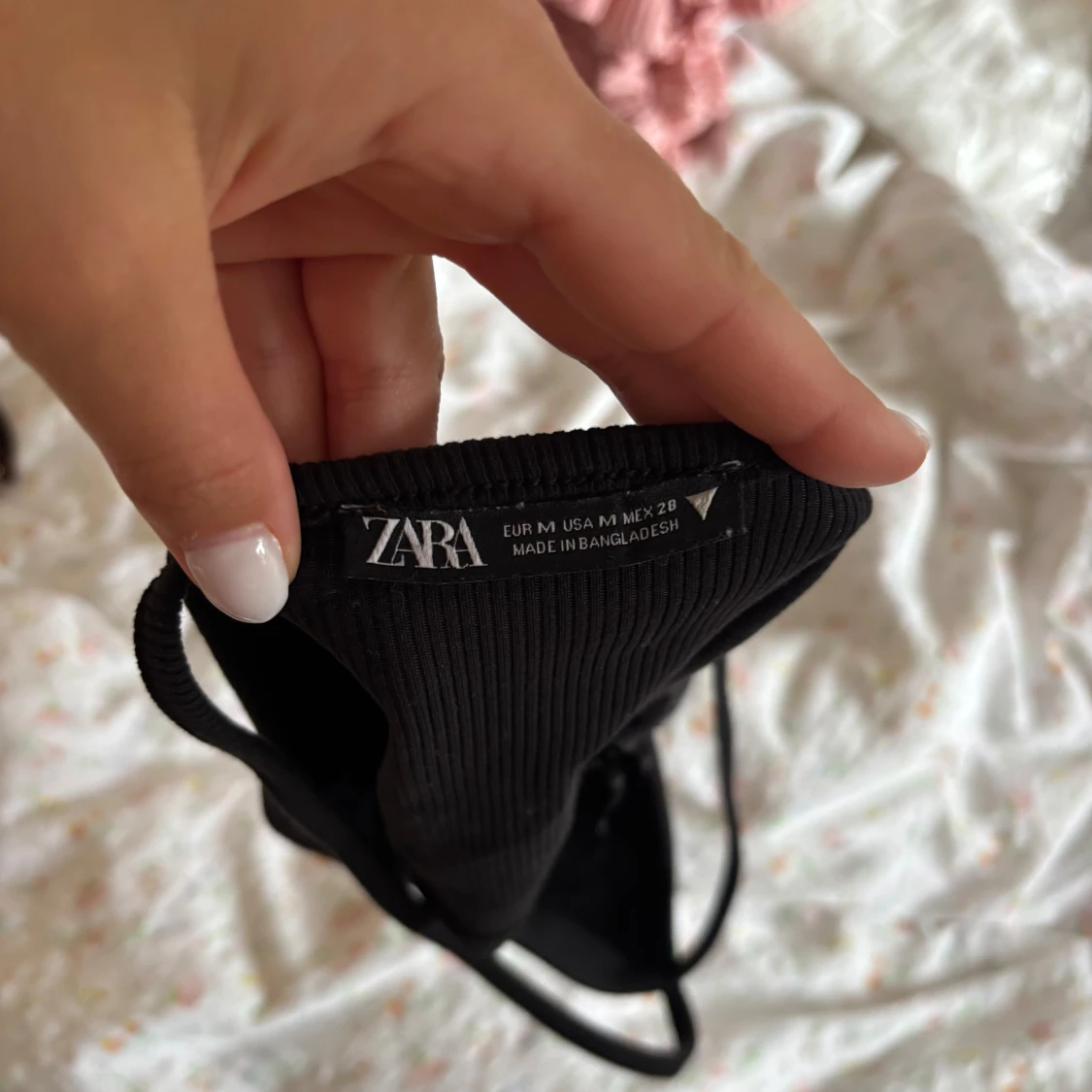 Svart ribbad linnetopp från Zara med smala axelband och rak halsringning. Toppen är croppad och har en stilren, enkel design som är lätt att matcha med olika outfits. Perfekt för dig som gillar minimalistisk stil och vill ha en topp som funkar året runt.
