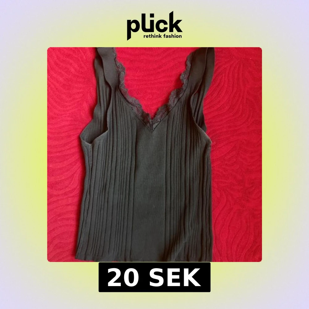 Svart ribbad linnetopp med breda axelband och v-ringning dekorerad med spets. Toppen är ärmlös och har en figurnära passform. Perfekt att styla med jeans eller kjol för en snygg look.