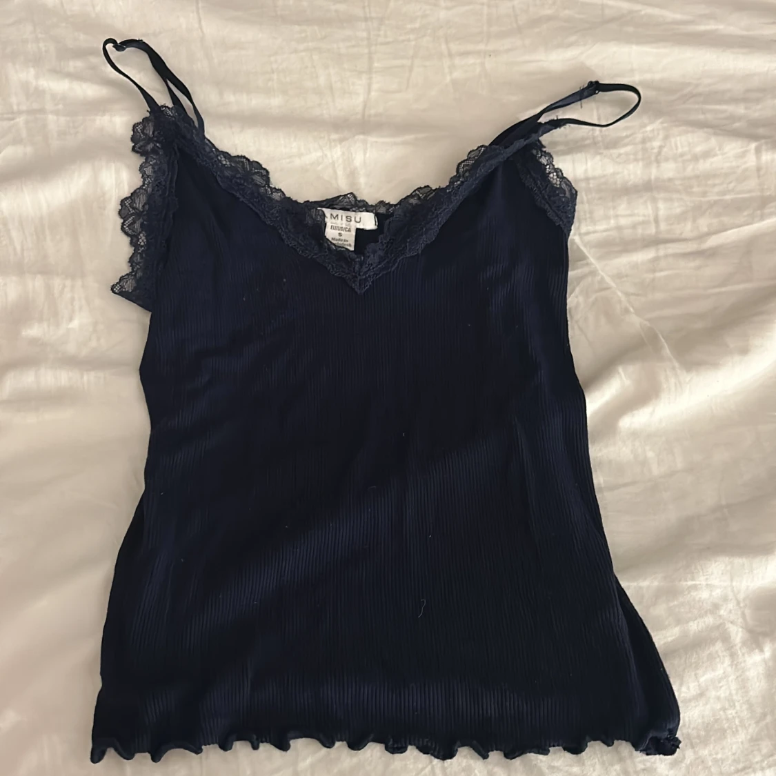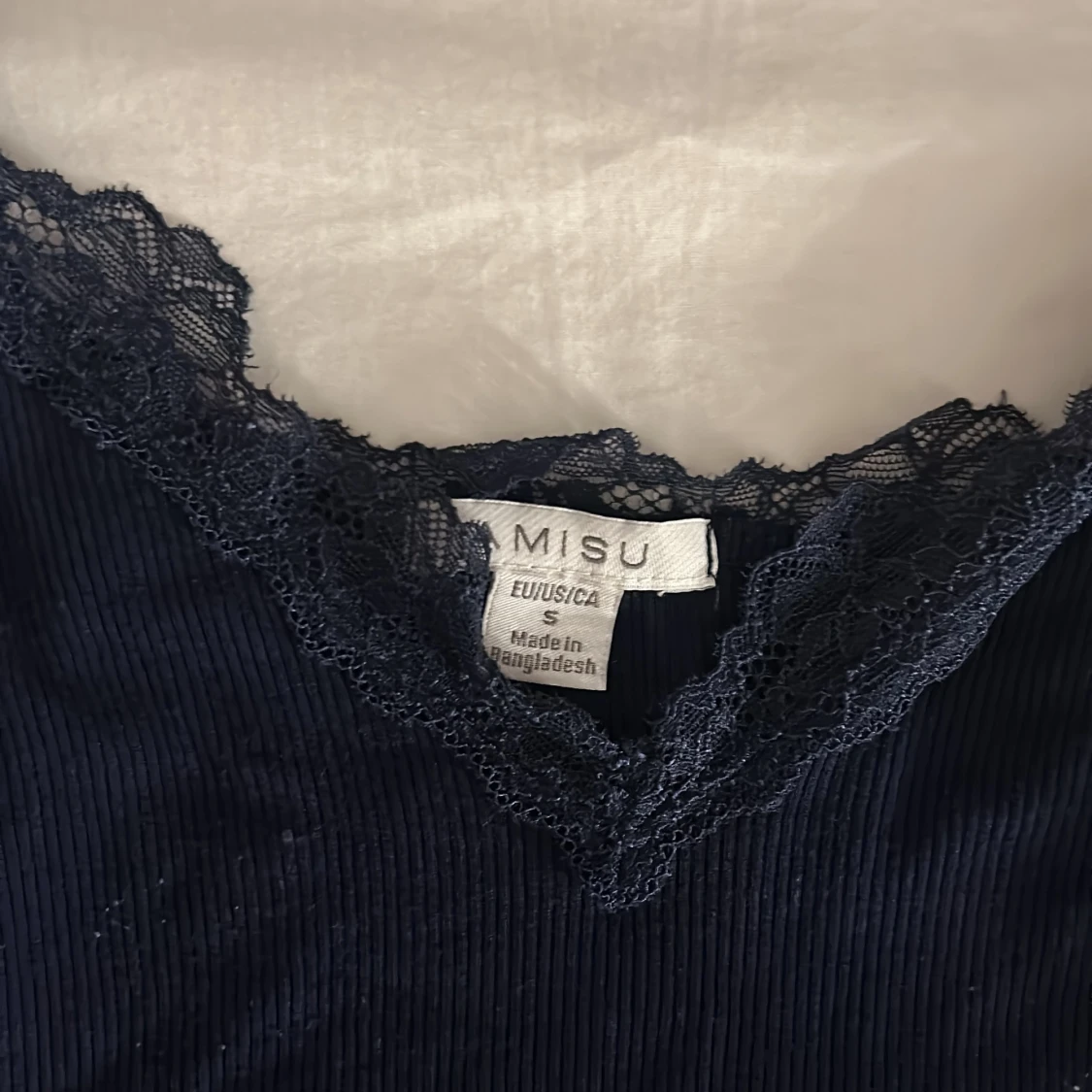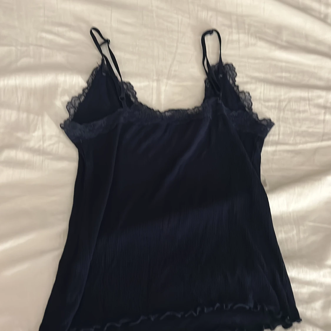 Ett mörkblått linne med spets i storlek XS från new yorker, mycket bra skick och aldrig använt