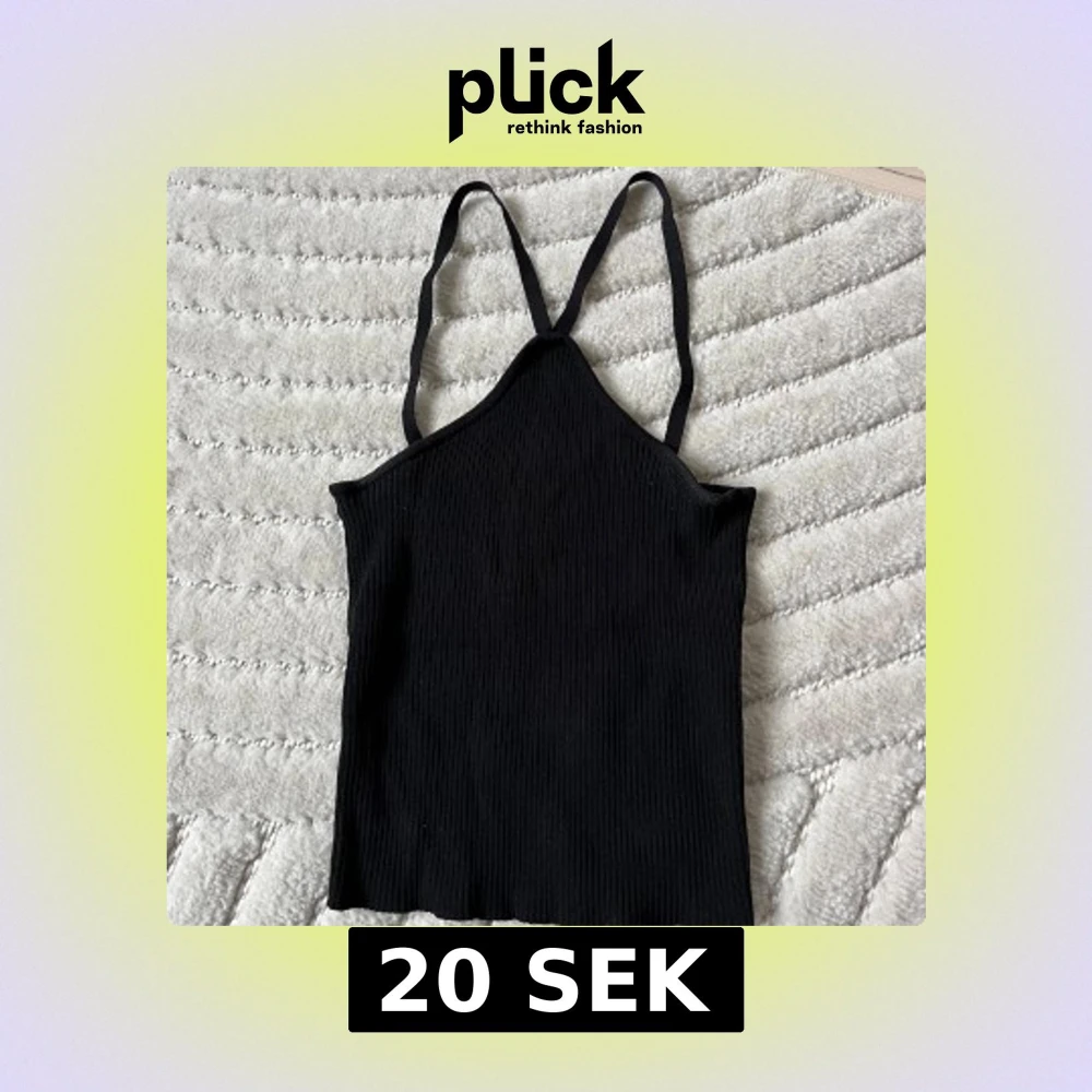 En svart ribbad linnetopp med smala axelband och rak passform. Sparsamt använd