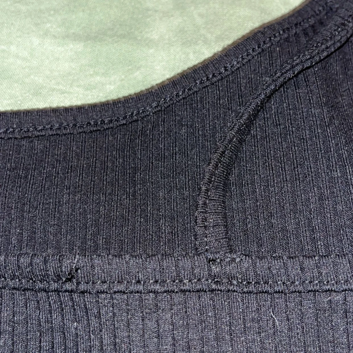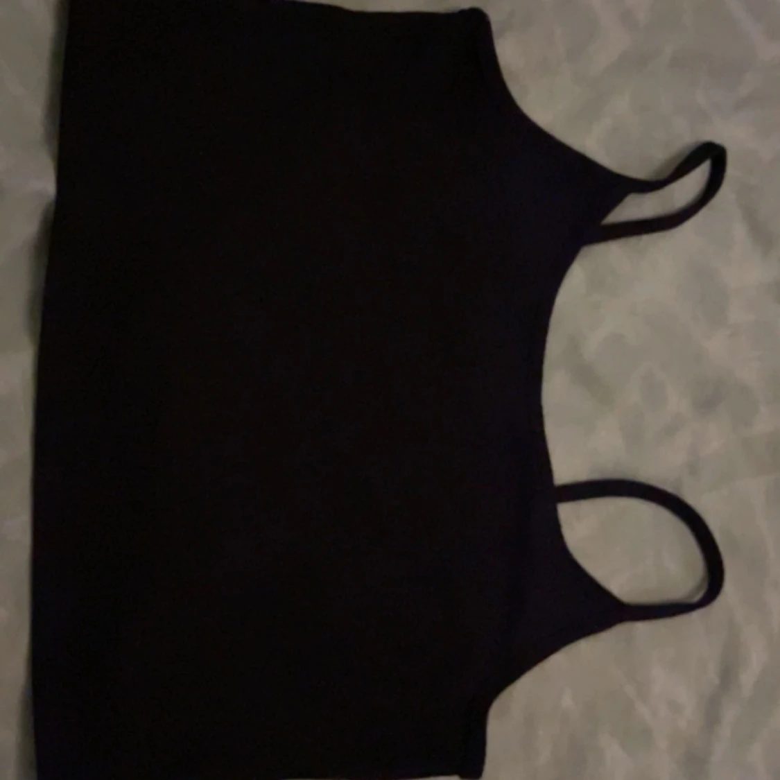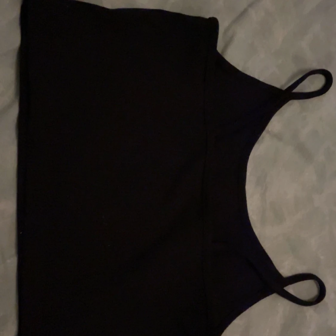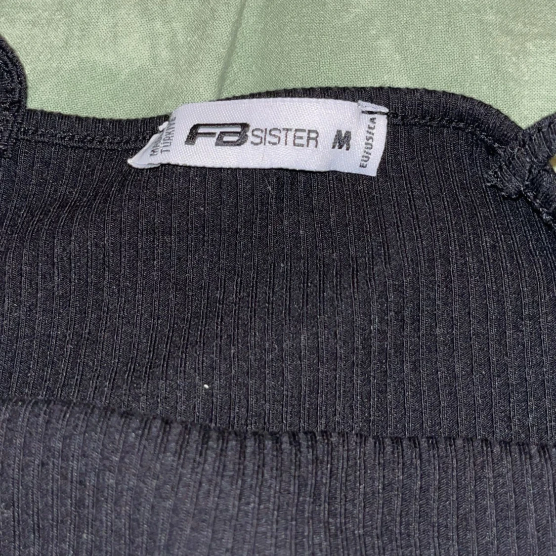 Snygg svart ribbad linnetopp från FB Sister med smala axelband. Perfekt för en stilren look. Passar bra till både jeans och kjol.