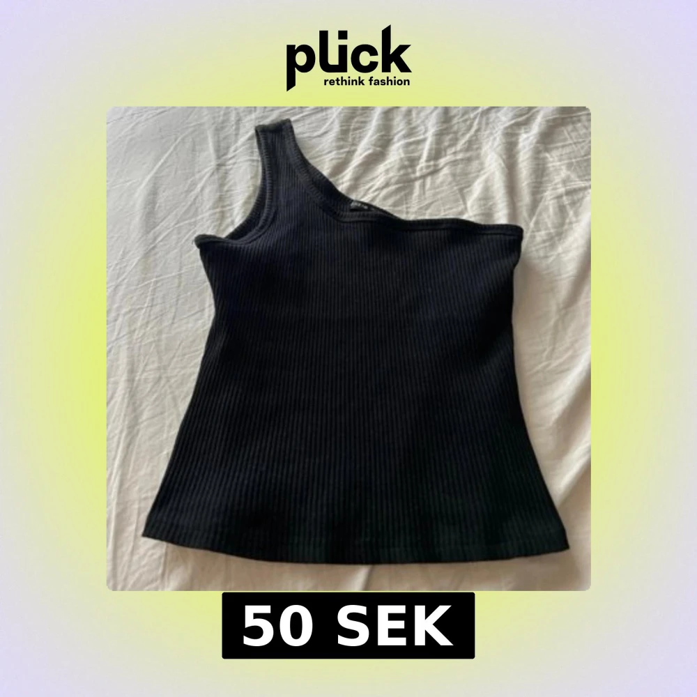 Snygg svart ribbad topp med oneshoulder-design. Toppen är ärmlös och har en tight passform som framhäver siluetten. Perfekt för att skapa en trendig look med enkel twist. Materialet är mjukt och stretchigt för extra komfort.
