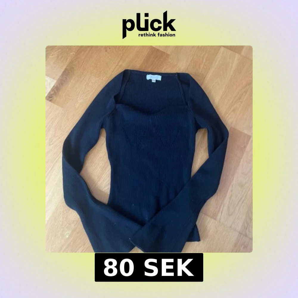 Snygg svart ribbad topp med långa ärmar och fyrkantig halsringning. Storlek S/M passar även mig som vanligtvis har XS men är stretchig.