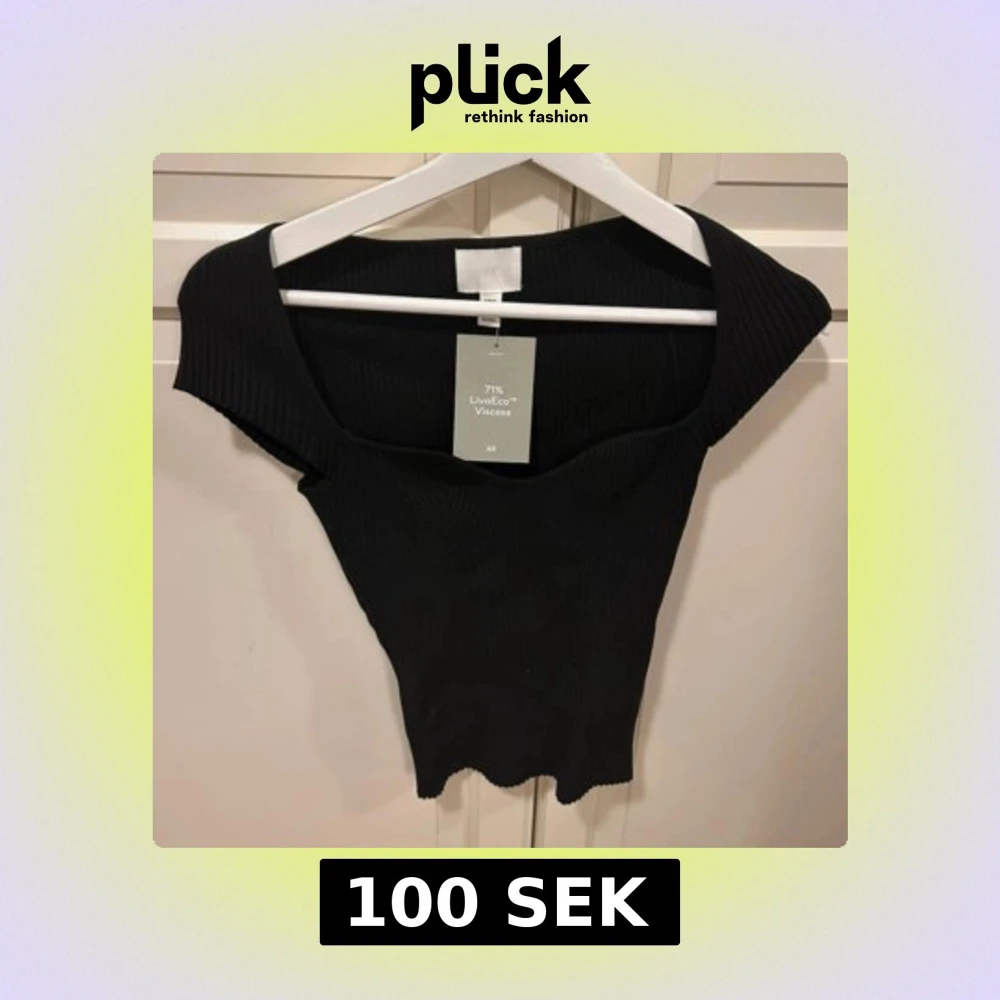 Svart snygg ribbad topp från H&M med urringning och korta ärmar. Gjord i stretchigt material. Perfekt att styla med nästa allt. Har lånat bilderna från tjejen jag köpte den av. Säljer den för att den tyvärr inte passade när jag fick hem den. Skriv gärna vid frågor!