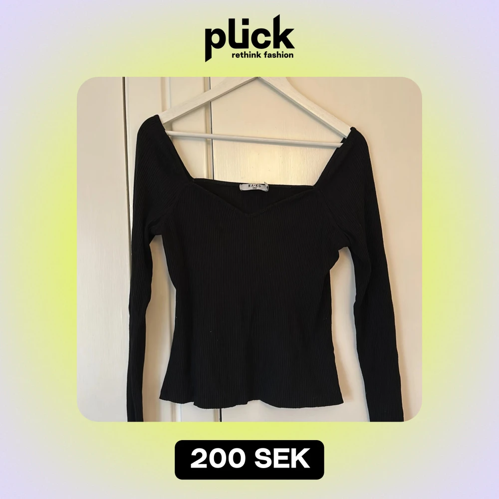 Säljer en snygg svart ribbad topp från NA-KD i storlek M. Toppen har en offshoulder-design med långa ärmar och en v-ringad hals. Perfekt för både vardag och fest! 🖤