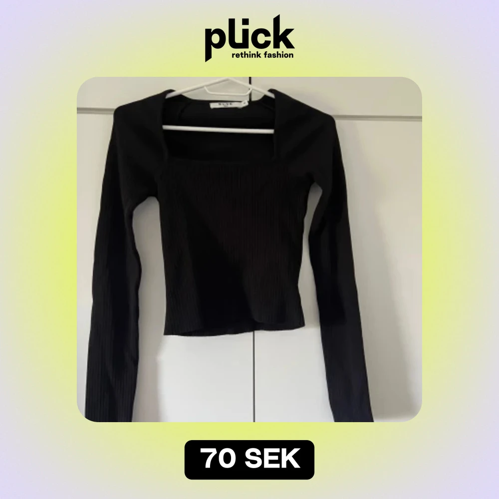 Säljer en snygg svart ribbad topp från NA-KD. Den har en fyrkantig halsringning och långa ärmar. Perfekt för både vardag och fest! 🖤