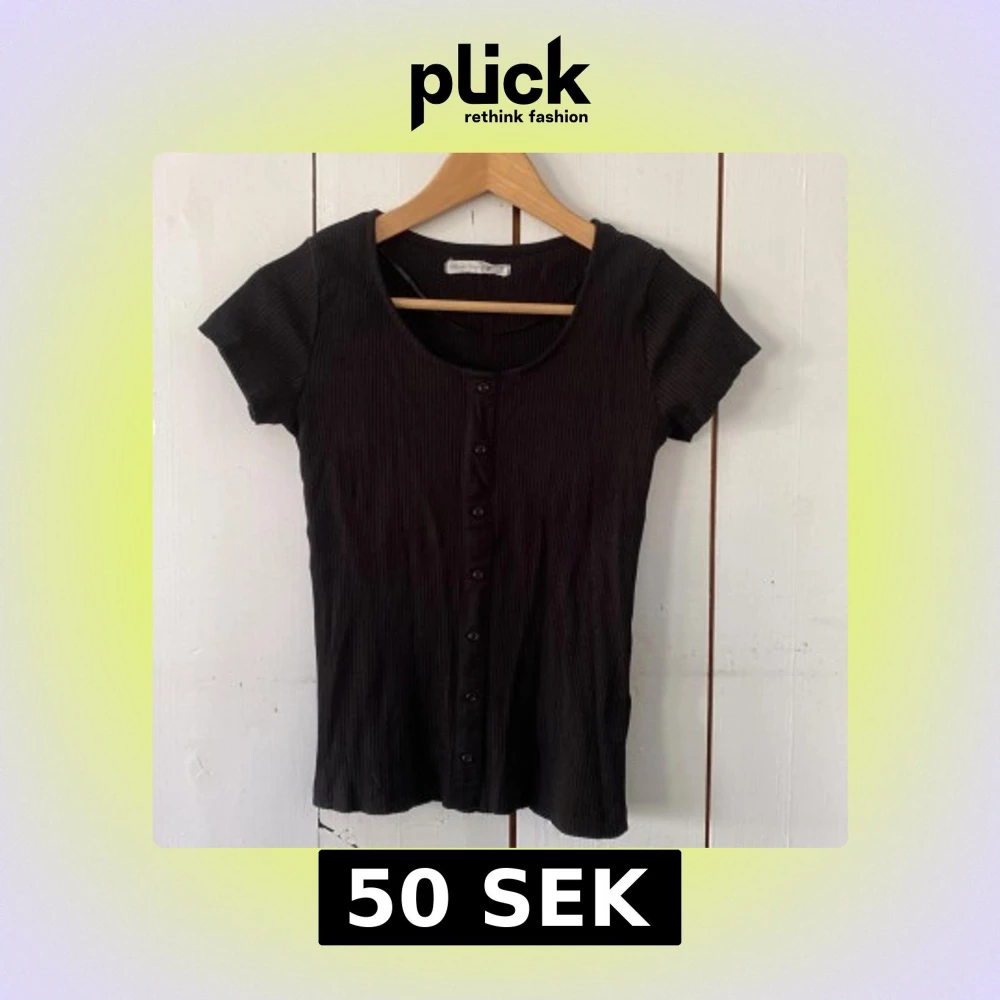 Svart ribbad topp från Black Story med korta ärmar och rund halsringning. Toppen har knappar hela vägen framtill och är gjord i ett mjukt, stretchigt material som sitter snyggt på kroppen. Perfekt till jeans eller kjol för en clean look.