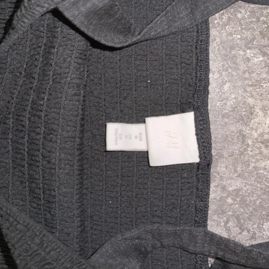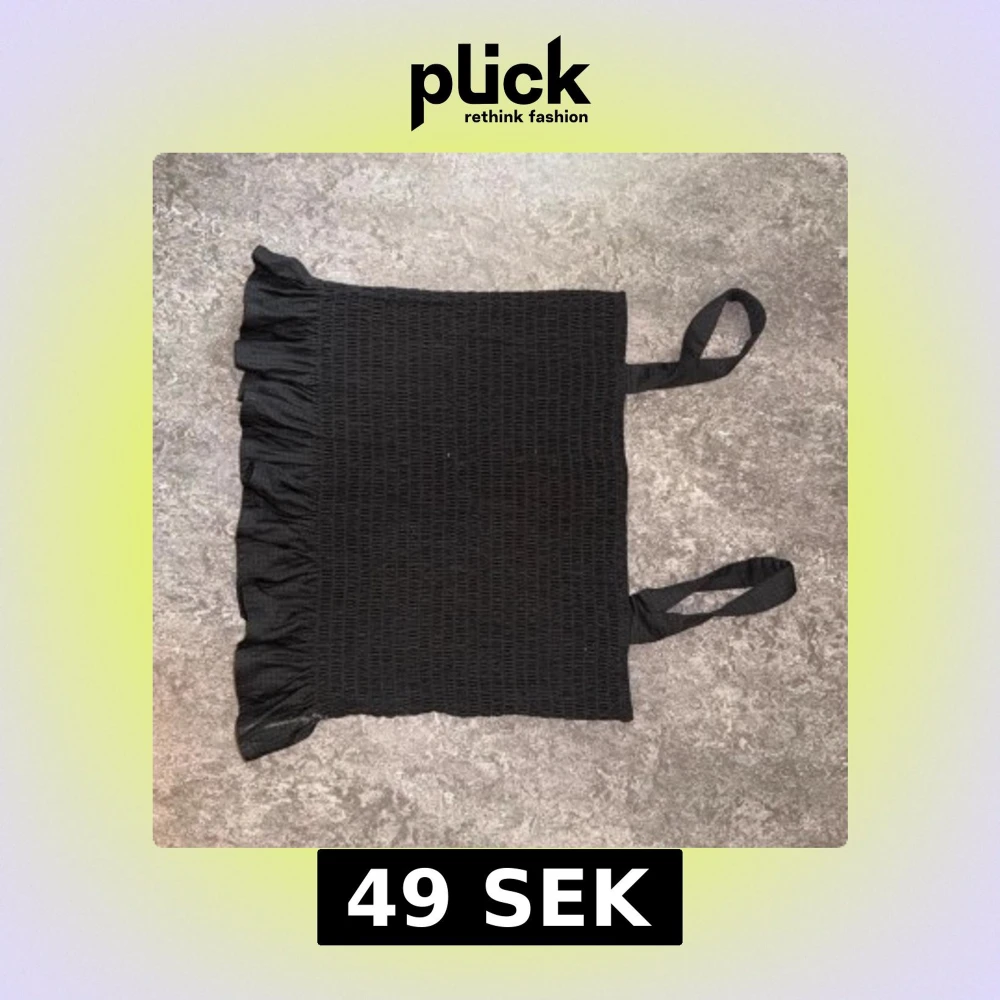Svart smockad linnetopp från H&M med volangkant nertill och breda axelband. Toppen är ärmlös och har en tight passform som sitter snyggt på kroppen. Perfekt att matcha med jeans eller kjol för en trendig look.