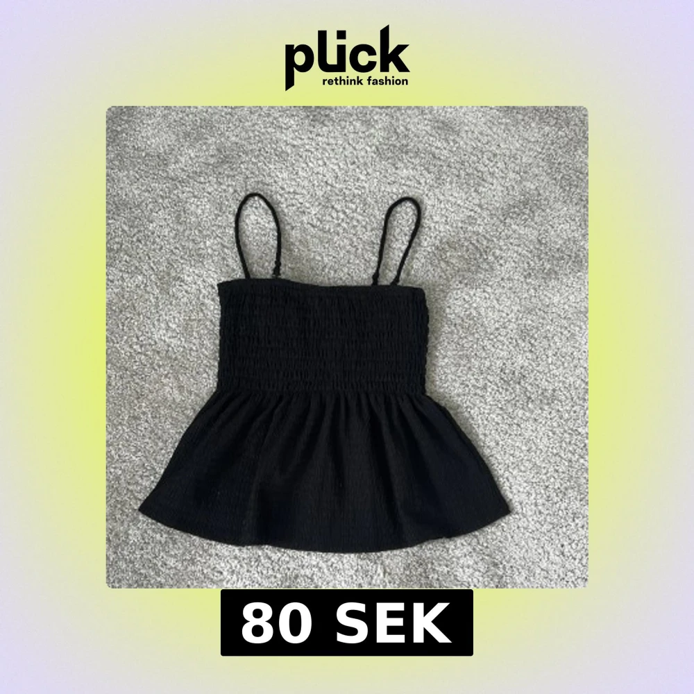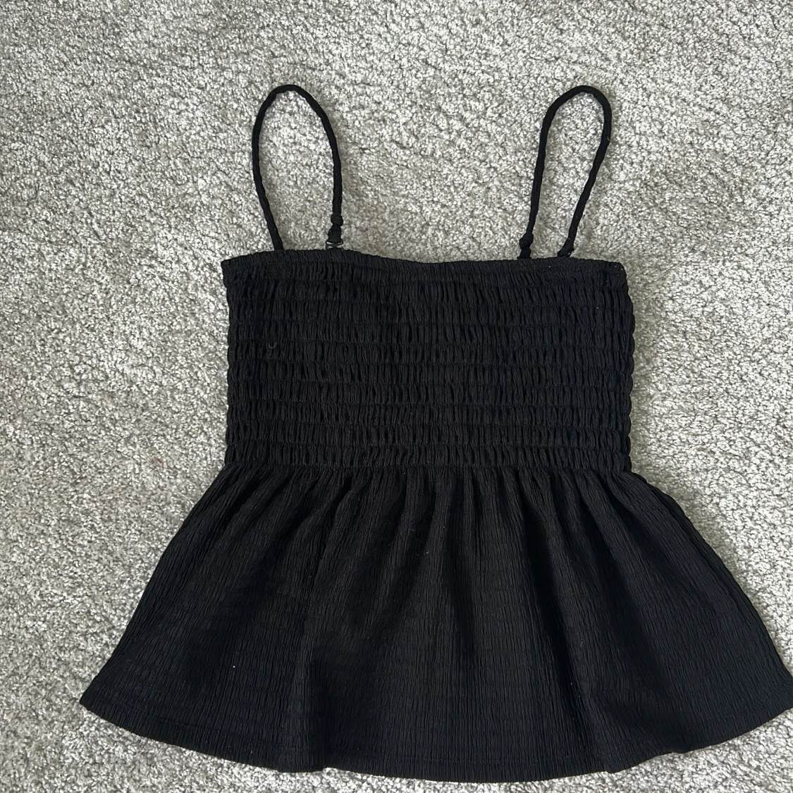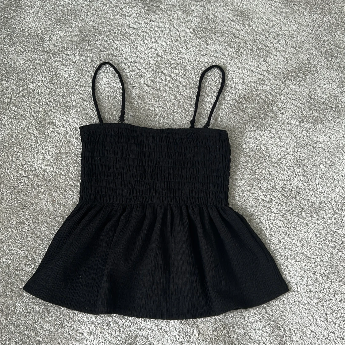 Säljer en svart söt linnetopp med smockad överdel och tunna axelband.😚💕