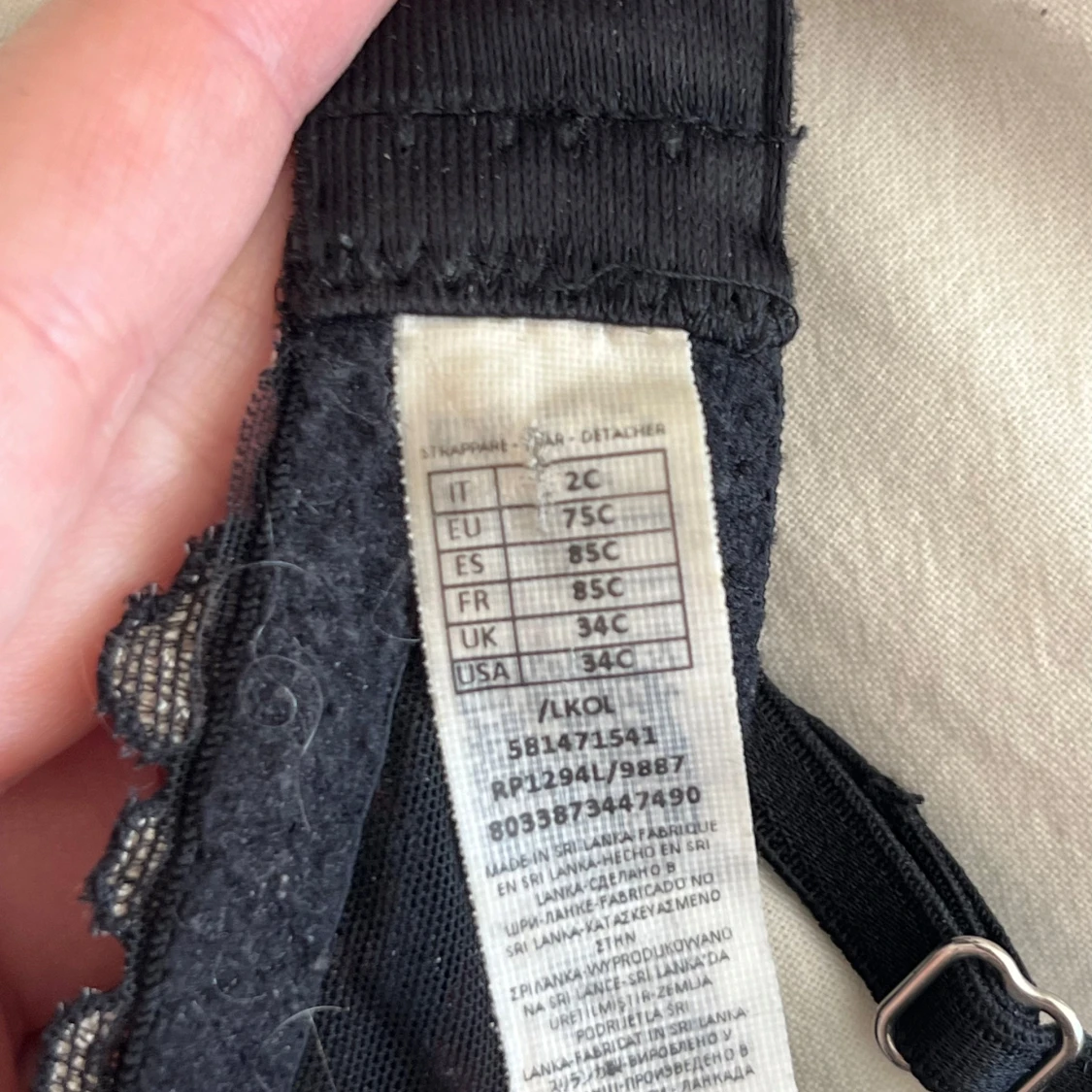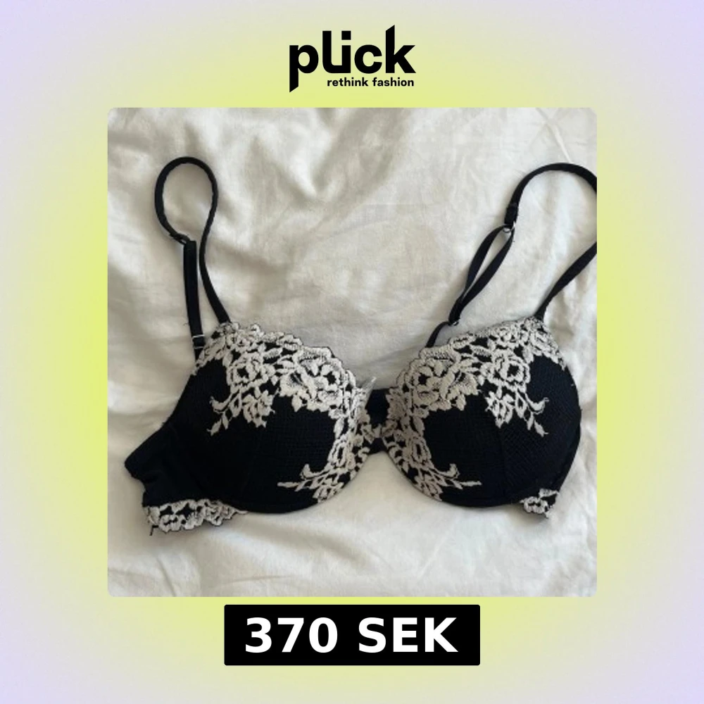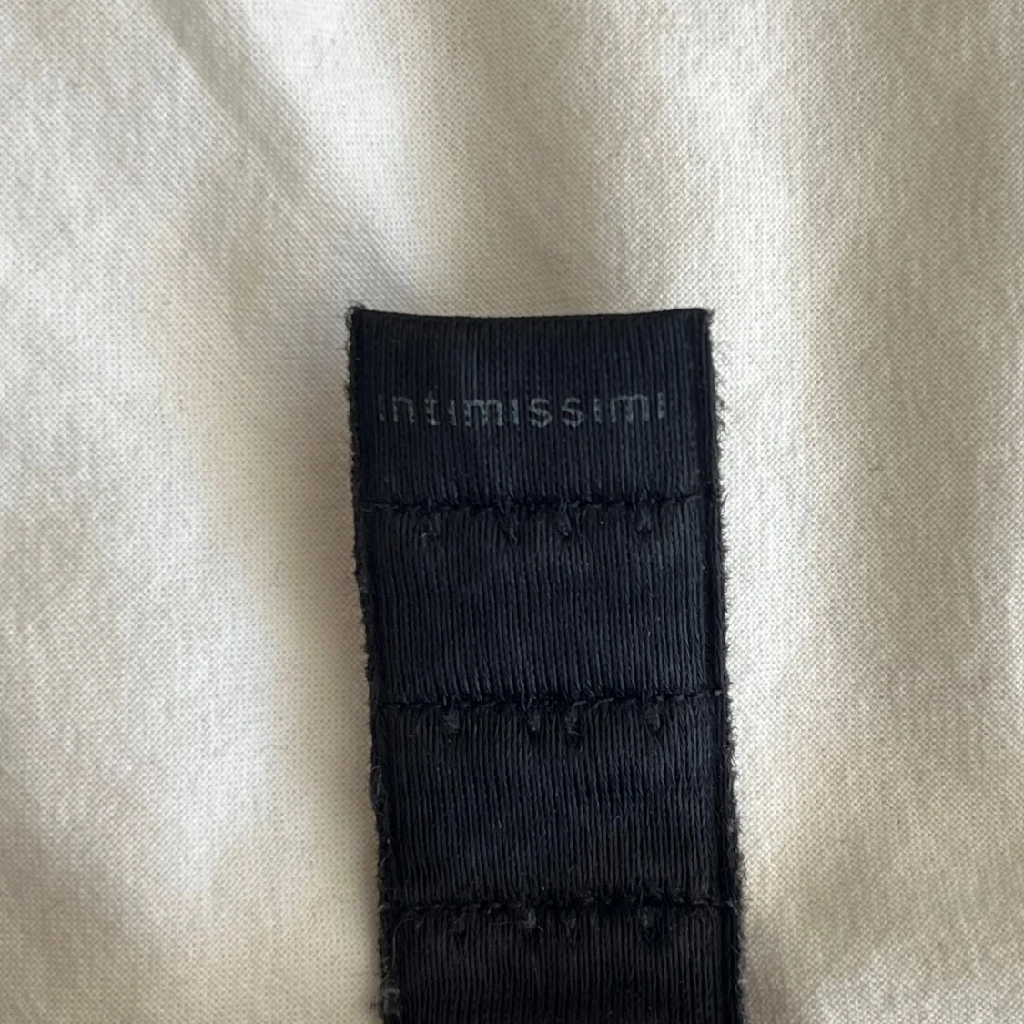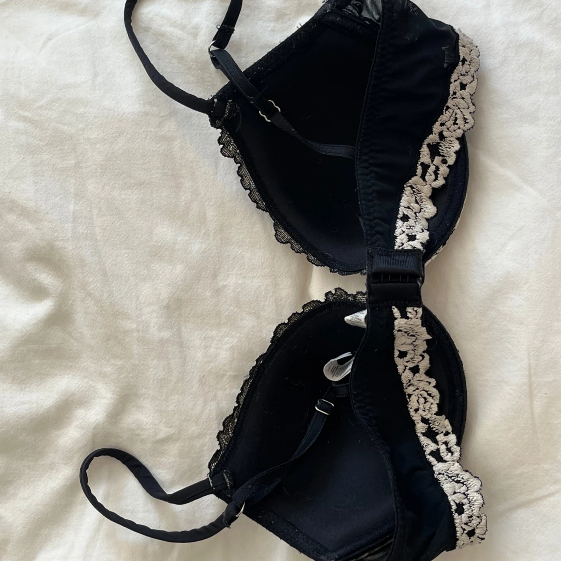 Snygg svart bh från Intimissimi med vit broderad spets upptill och längs kanterna. Kuporna är vadderade och har justerbara axelband. Perfekt för dig som gillar en feminin och elegant look med extra detaljer.