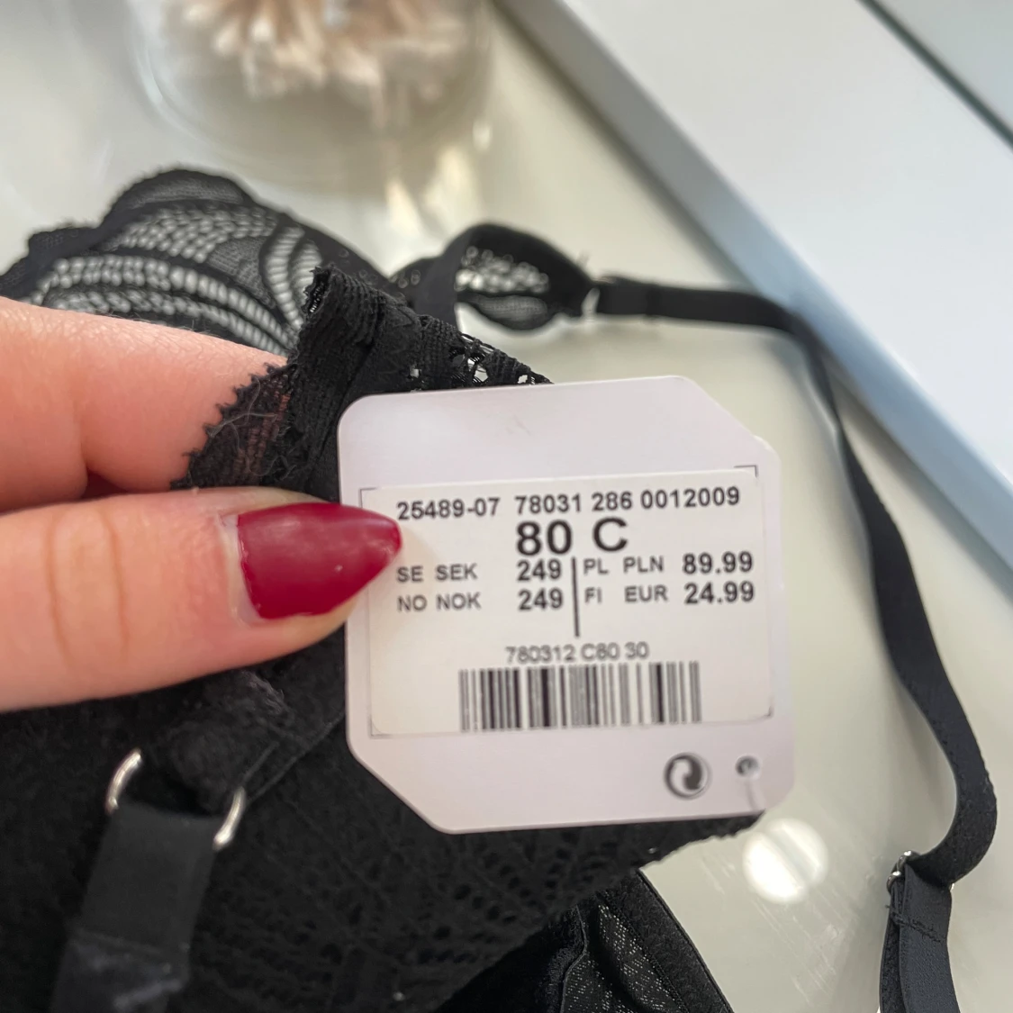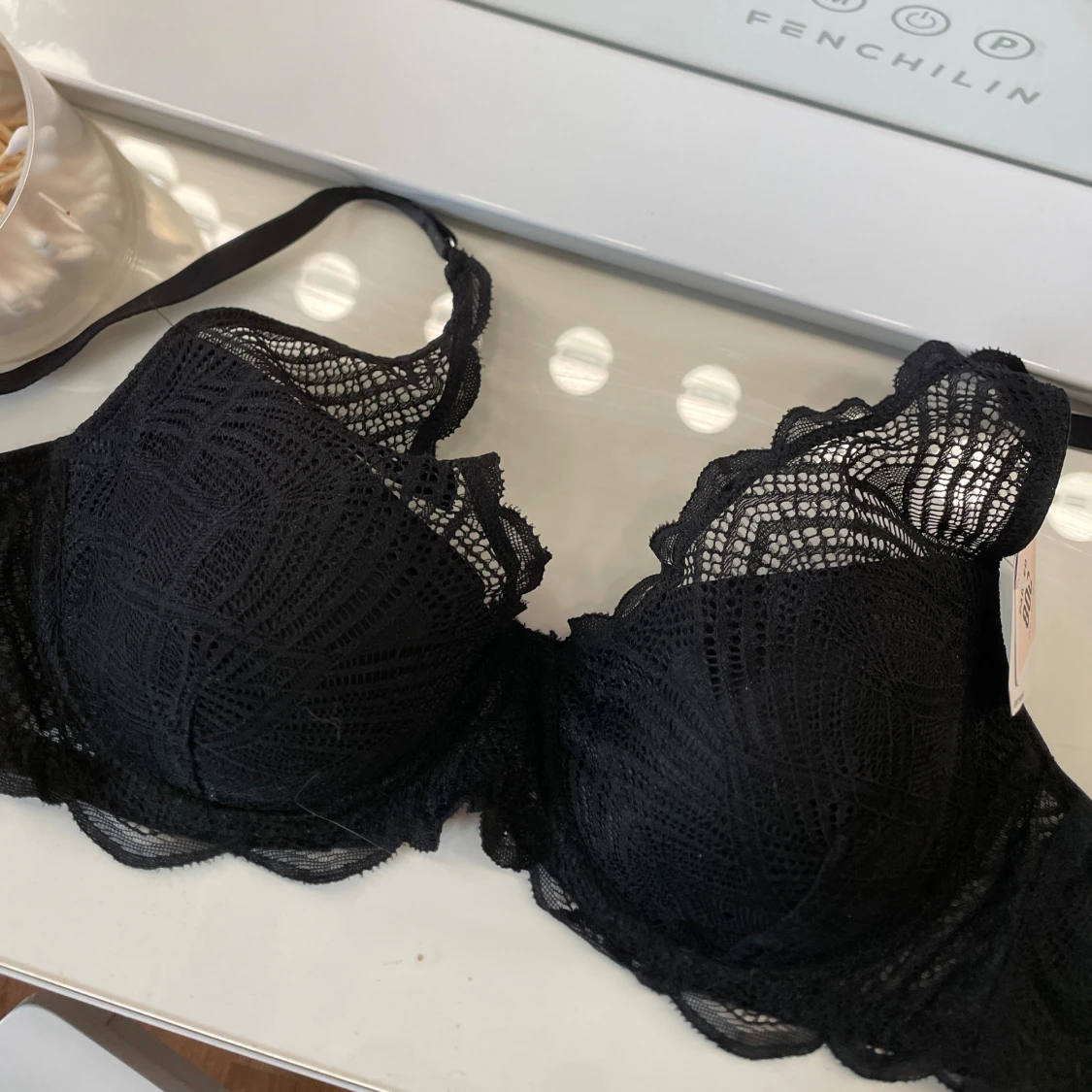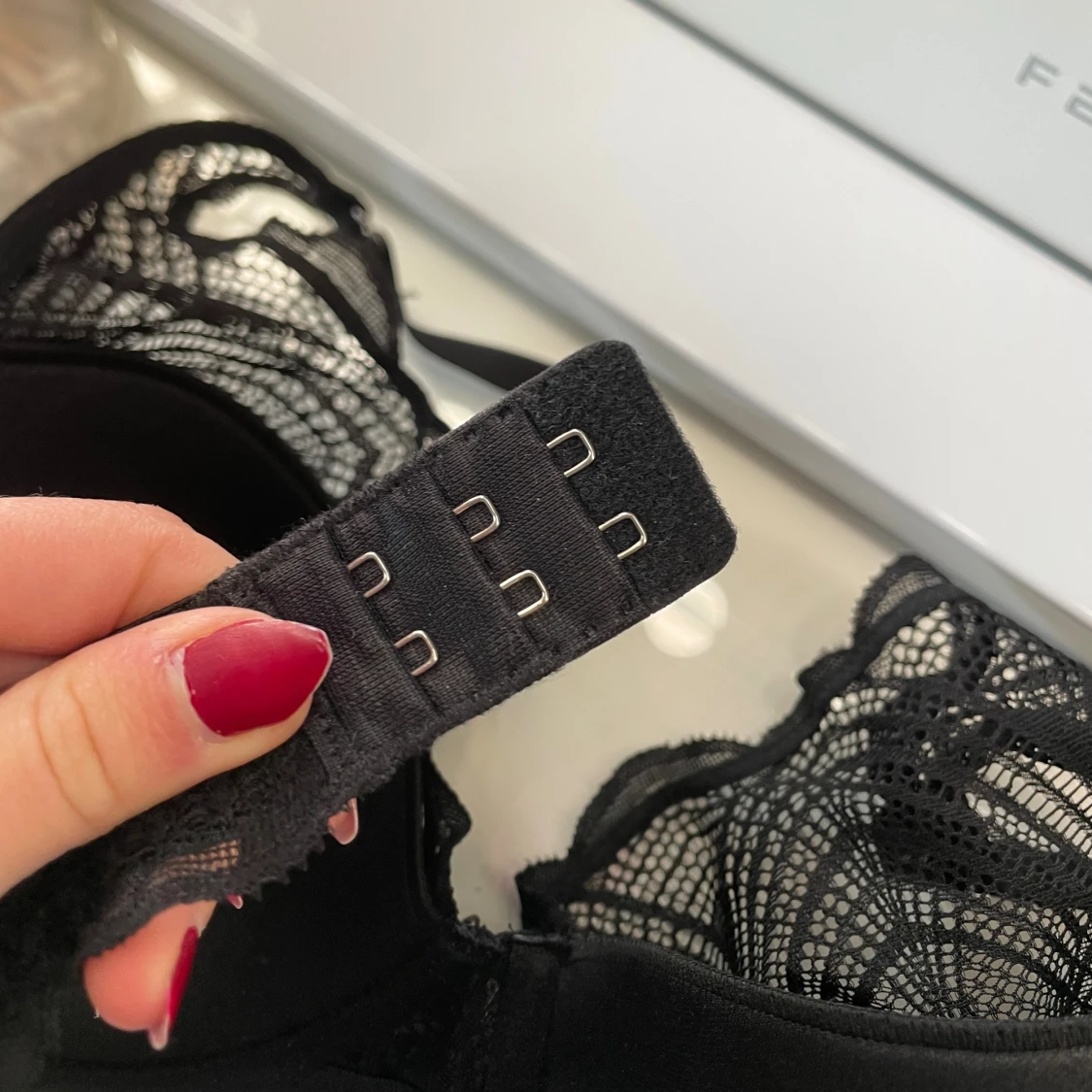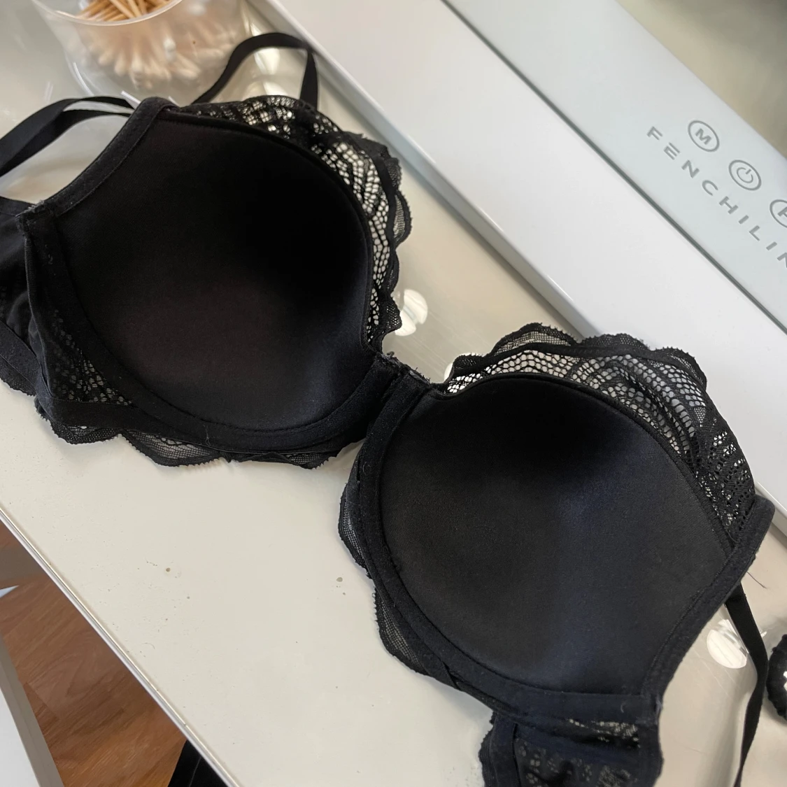 Snygg svart bh med spetsdetaljer och lätt vaddering. Bh:n har fina mönstrade spetsar över kuporna och släta insidor för extra komfort. Aldrig använd och prislapp är kvar. Säljer för hälften av priset😍Går att spänna in 3 steg. Perfekt för dig som vill ha både stil och stöd.