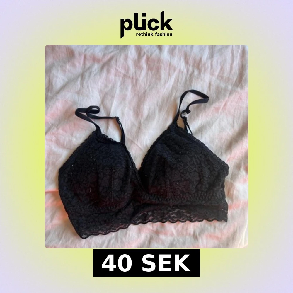 Säljer en svart bralette med vacker spets och justerbara axelband. Toppen har en feminin blommig spetsdesign och bred spetskant nedtill.