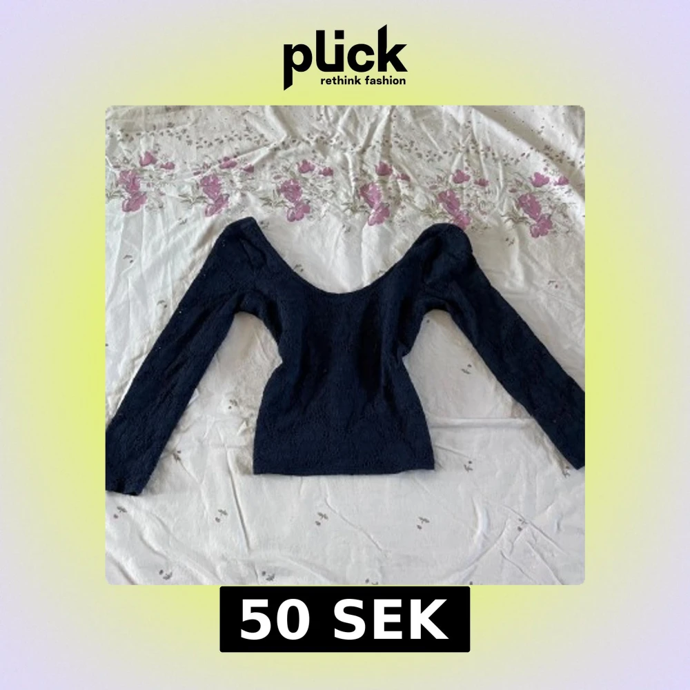 Säljer en svart topp i spets med lång ärm och djup urringning. Blusen har en figurnära passform och är tillverkad i ett vackert spetsmaterial som ger en elegant känsla.🌸🌷