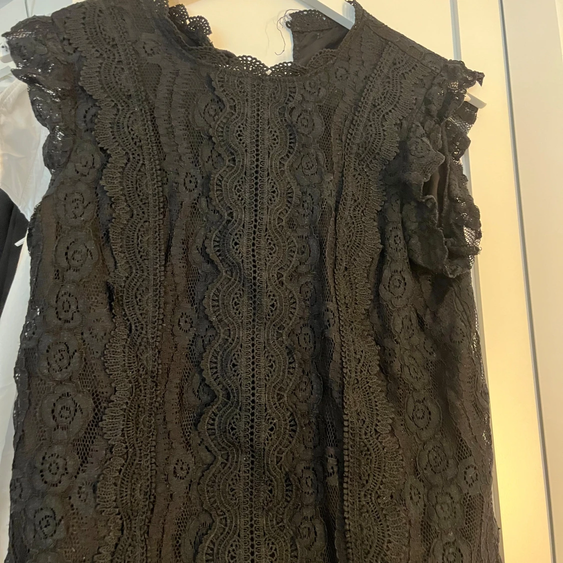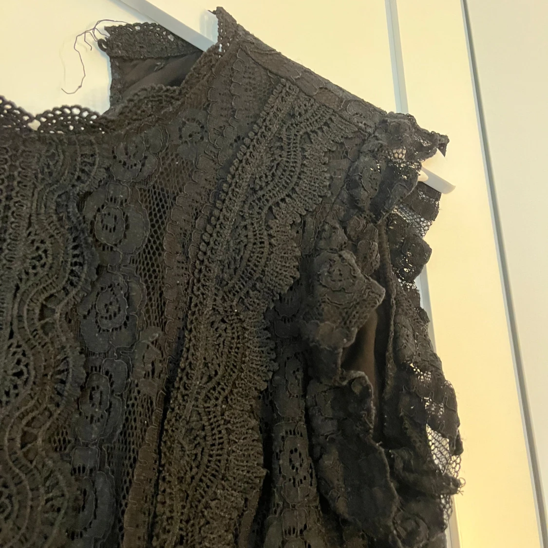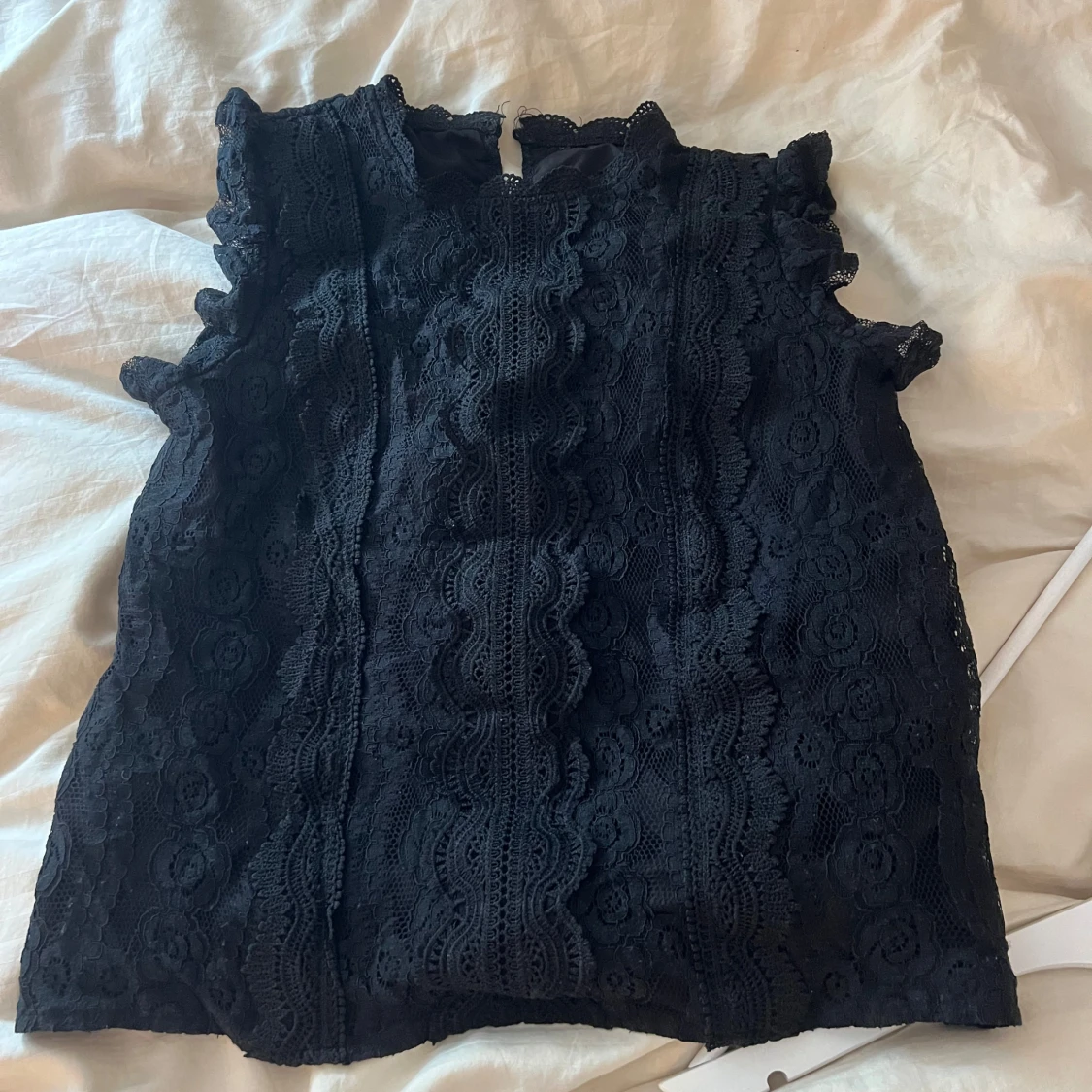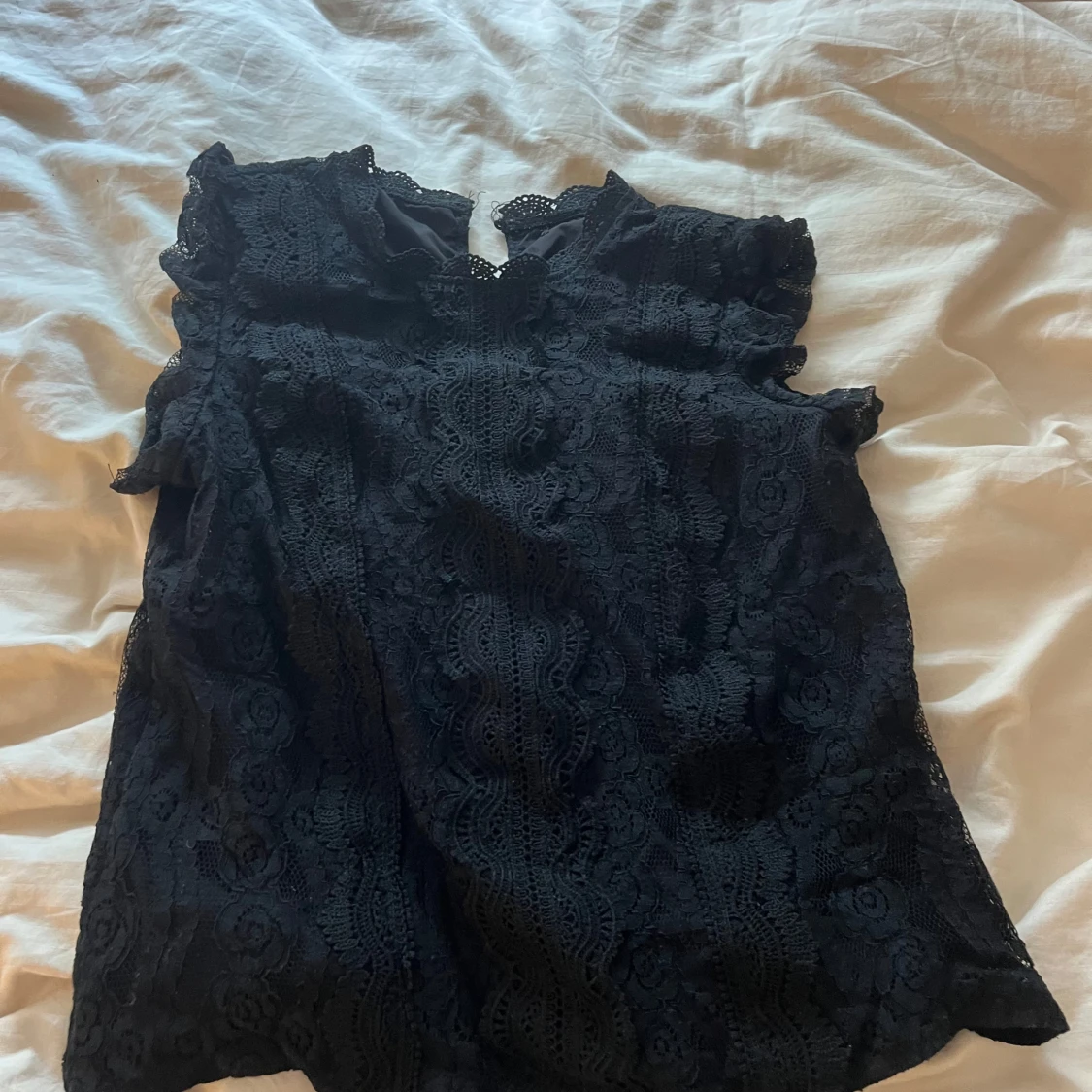 Jätte fin o söt svart spets topp/tröja med lite volanger vid ärmen, fint skick, säljer för den inte kommer till användning