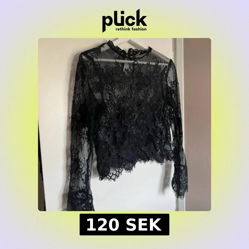 Säljer denna eleganta svarta spetstopp med långa ärmar då den ej kommer till användning🩷