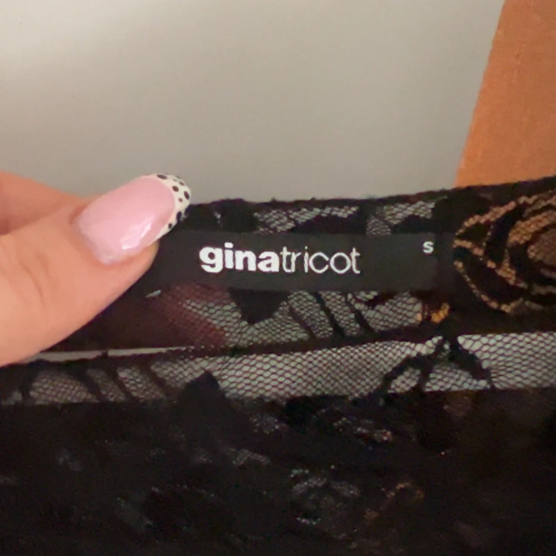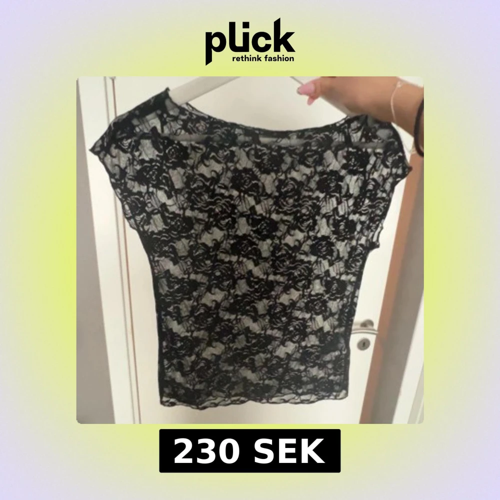 Säljer en svart, transparent spetsblus från Gina Tricot i storlek S. Blusen har ett blommigt spetsmönster och är ärmlös med rund halsringning. Använd en gång