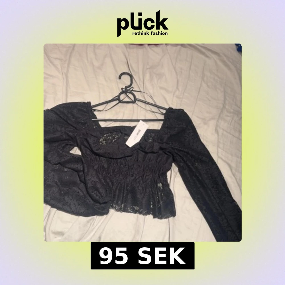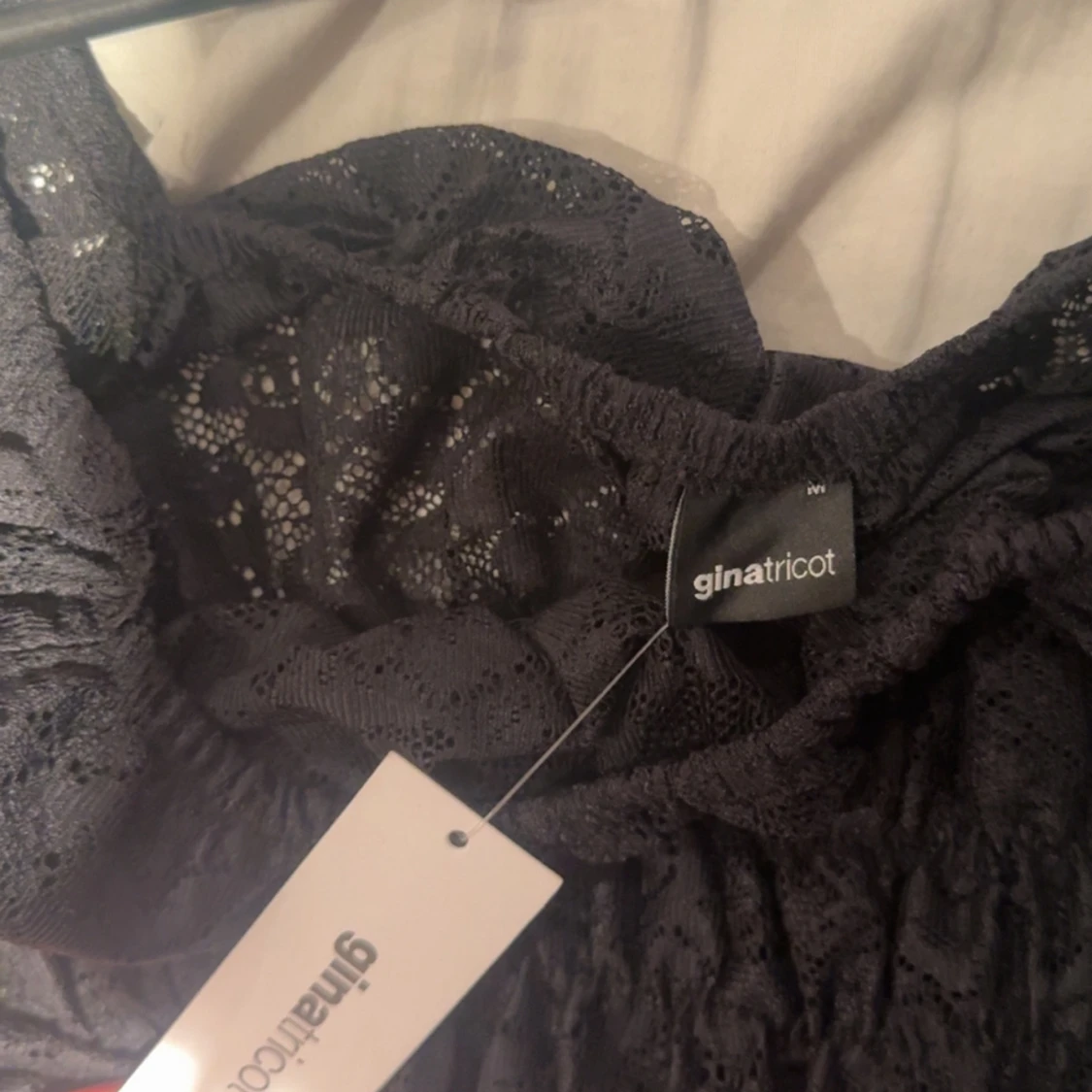 Supersnygg svart blus från Gina Tricot i storlek M. Blusen har långa puffärmar och är gjord i ett spetsmaterial. Smockad midja och fyrkantig urringning . Ny med prislapp