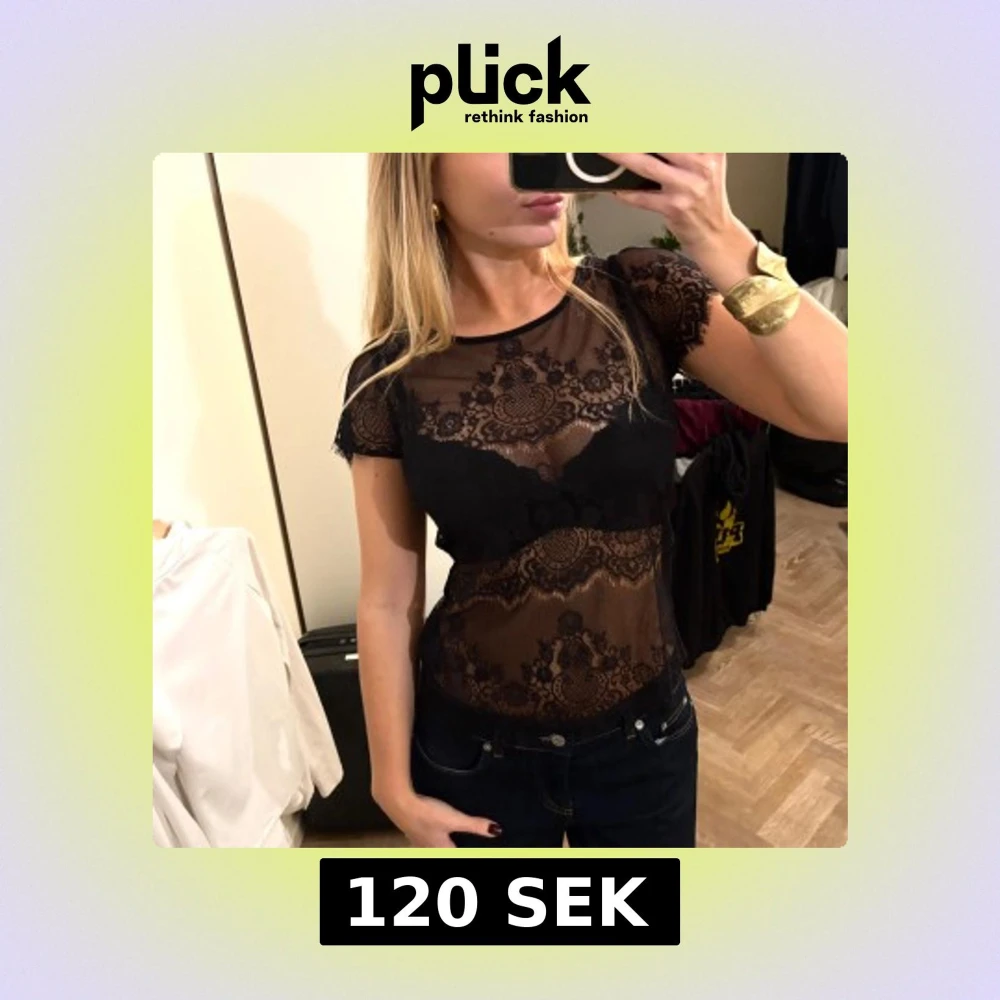 Supersnygg svart blus i transparent spets från Hallhuber Donna. Blusen har korta ärmar, rund halsringning och ett detaljerat spetsmönster med fina kanter. Perfekt att styla med jeans eller kjol för en cool look.