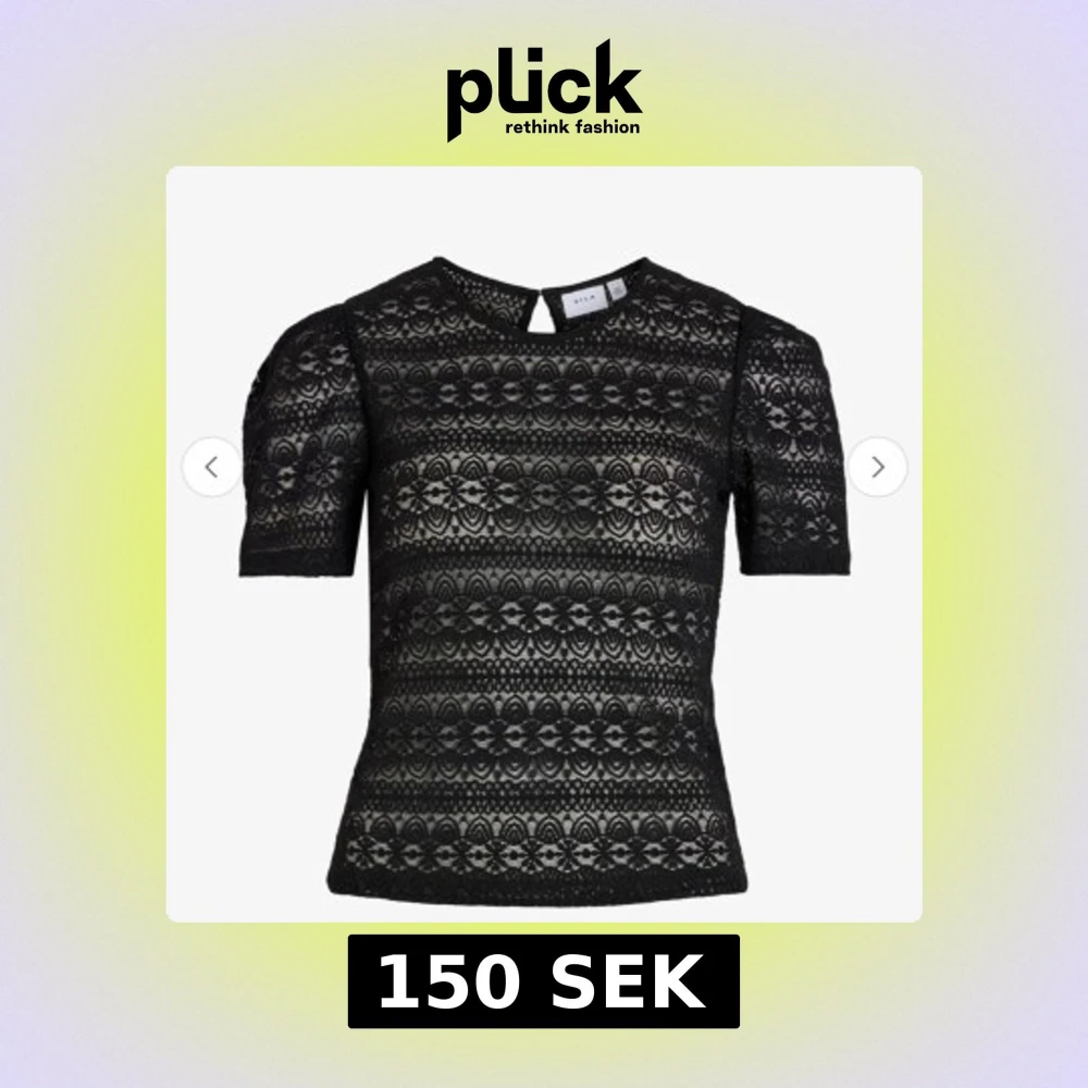Supersnygg svart blus från Vila i genombruten spets med blommigt mönster. Kortärmad modell med rund halsringning och knappdetalj i nacken. Perfekt för dig som vill ha en feminin och trendig look.