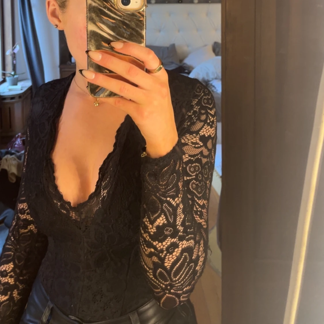 Svart spetsbody med tight passform som går att klä både upp och ner