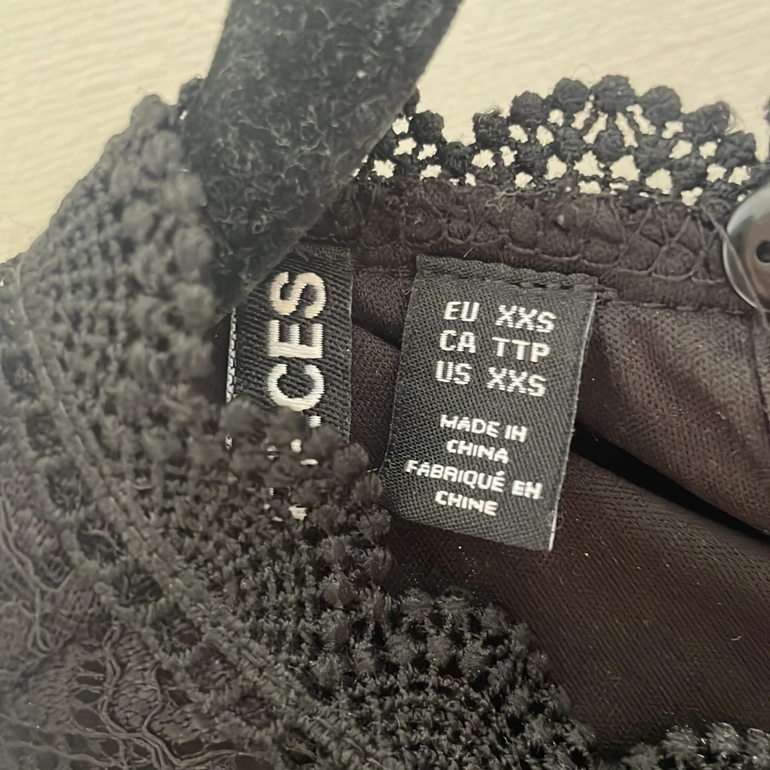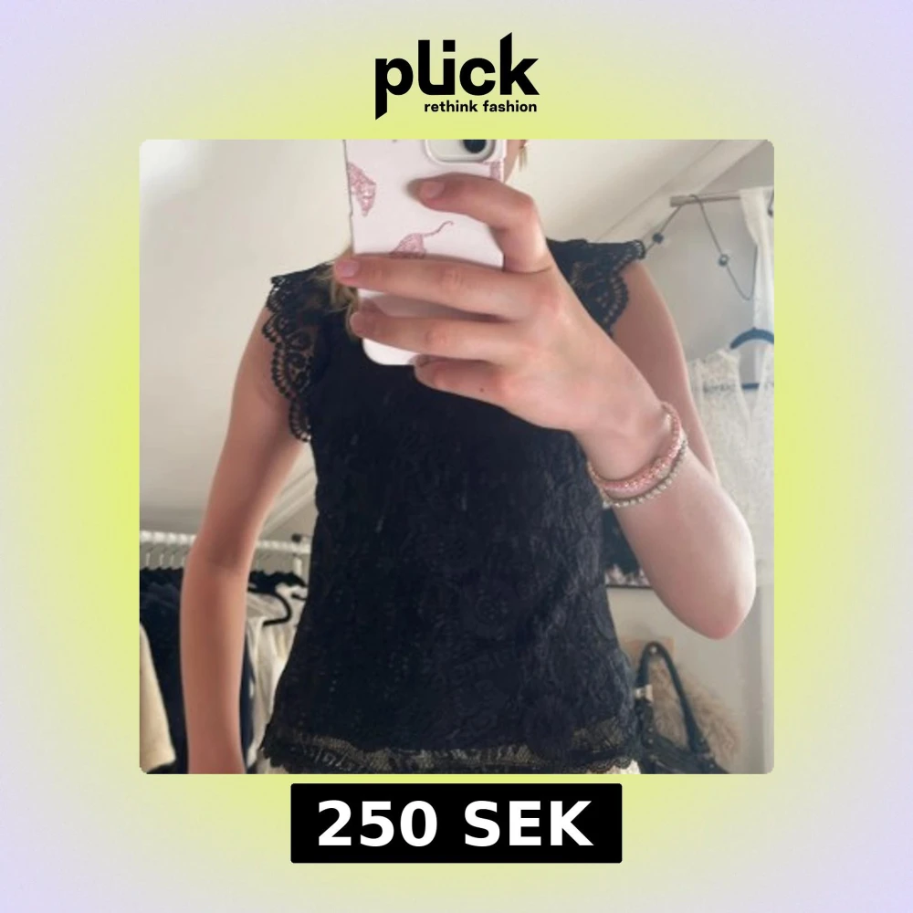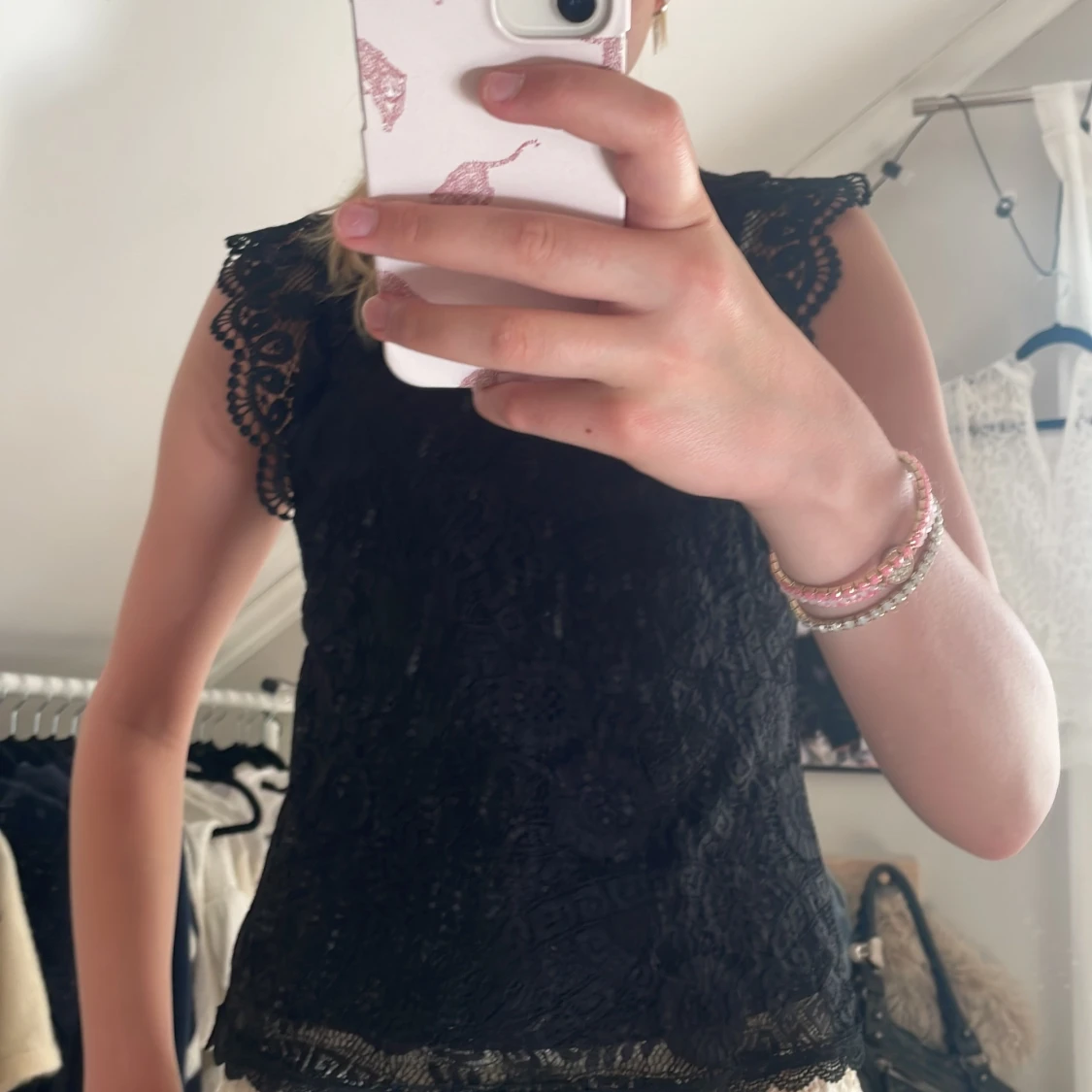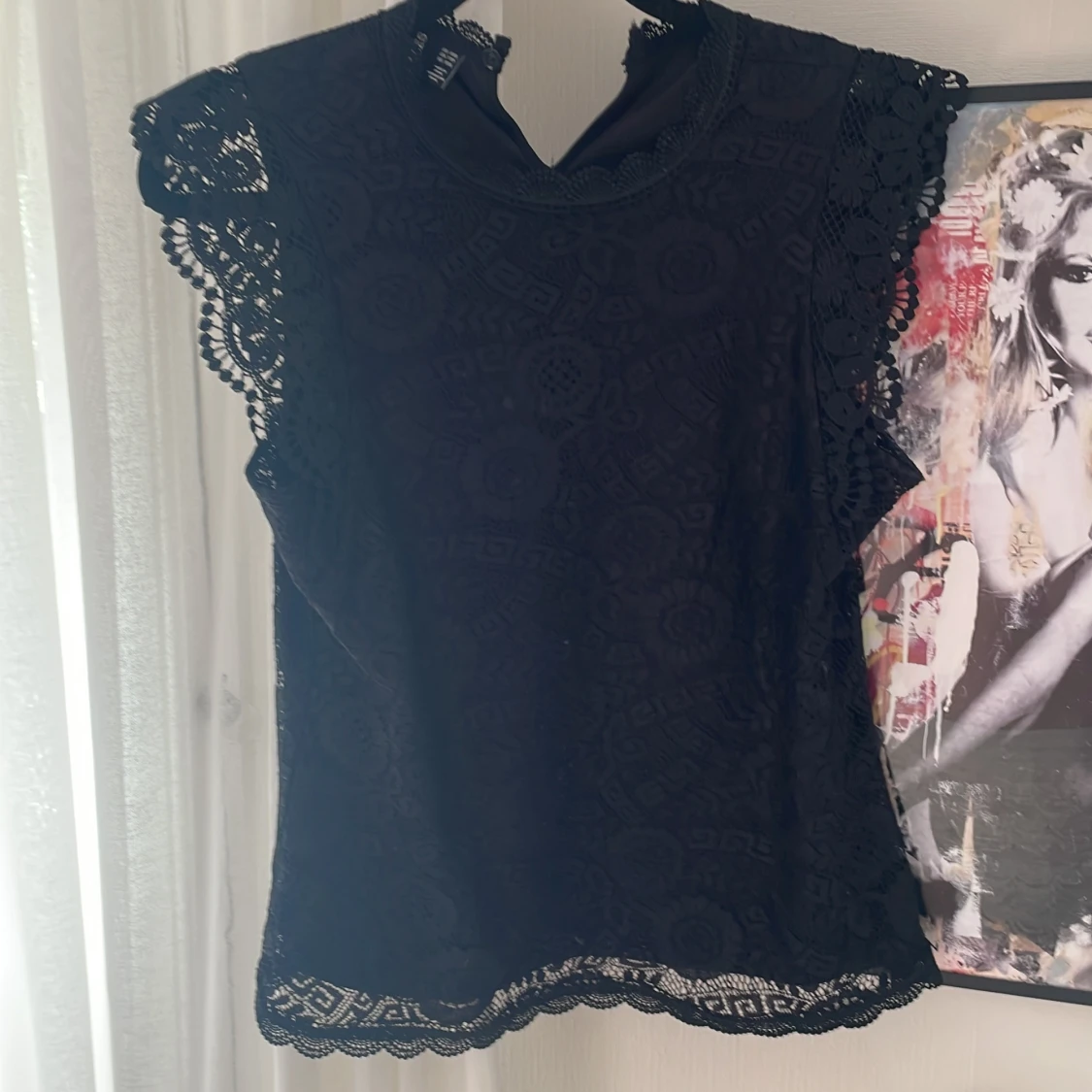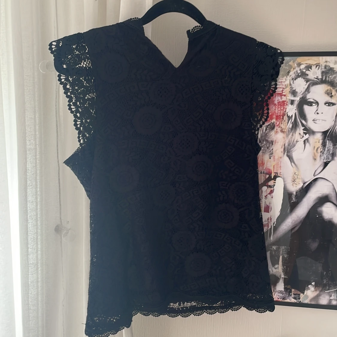 Supersnygg svart blus i spets med fin detaljer!! Det står storlek 36 men passar nog mer XS❤️