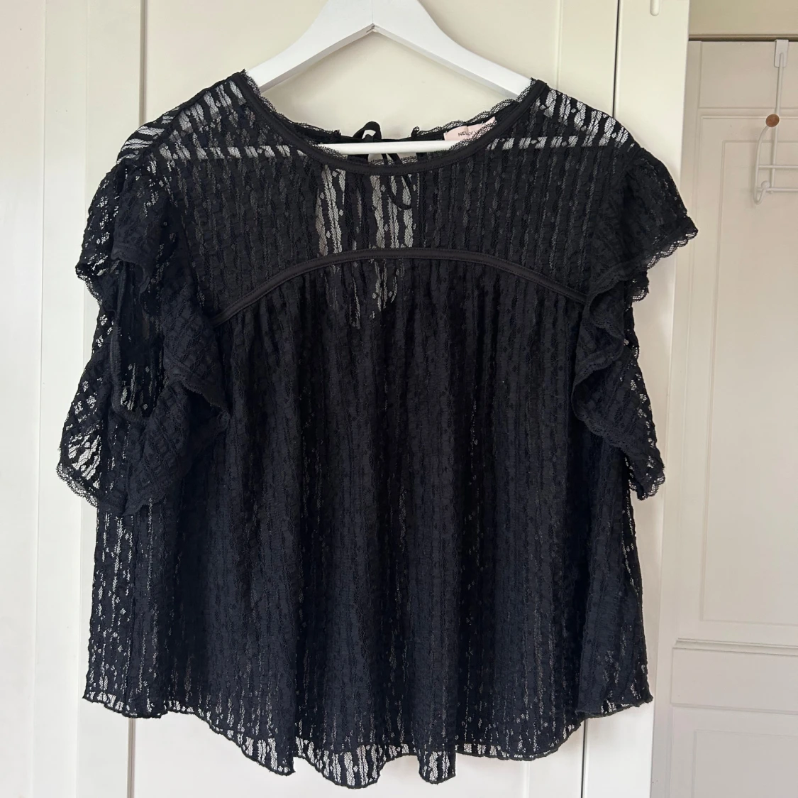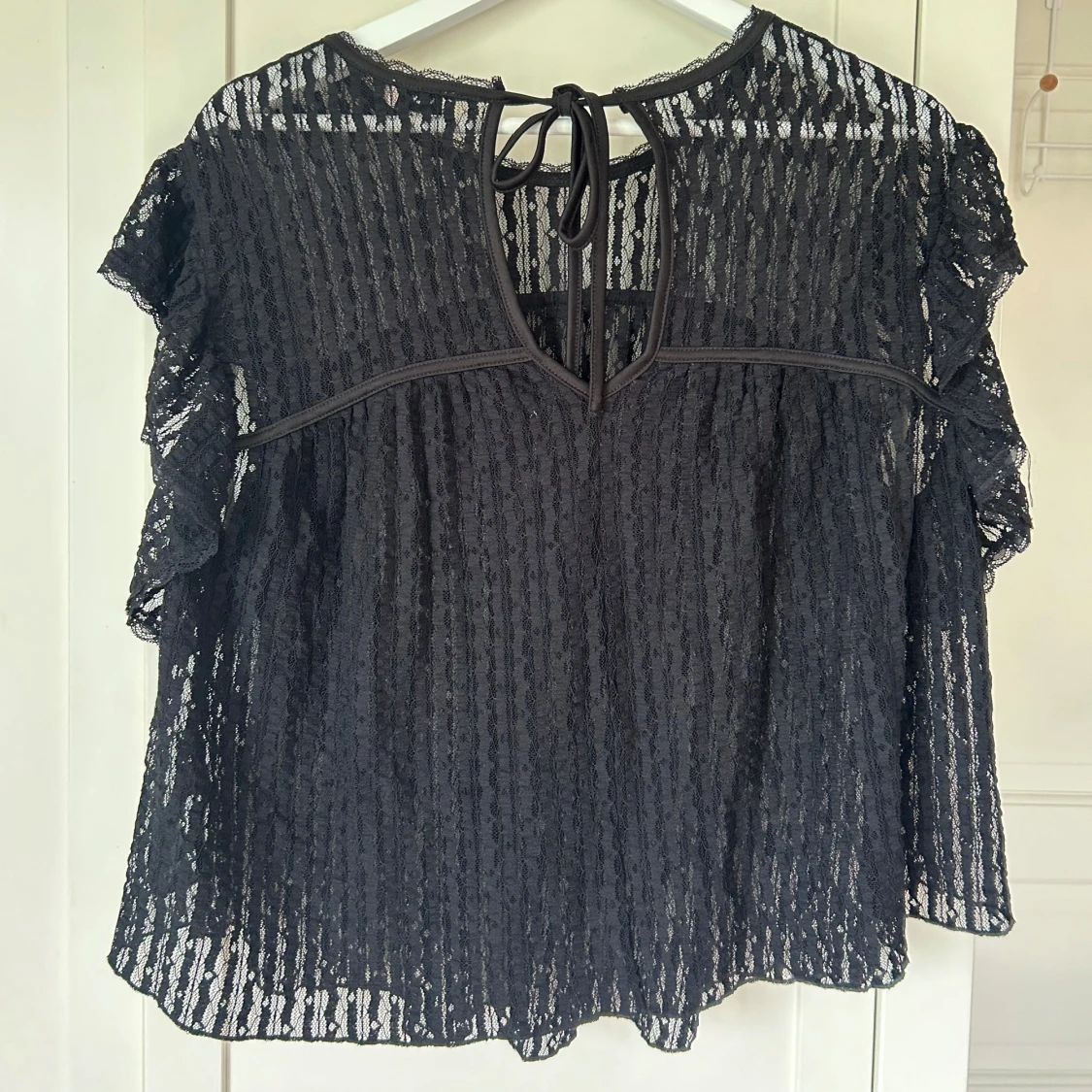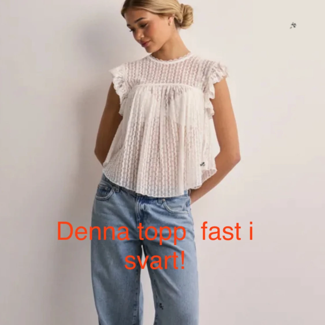 Jättefin och söt spetstopp, kan kläs med ett linne eller bh under! Köpte från Nelly, orginalpriset 299kr. Toppen säljs längre inte i svart på hemsidan utan bara vit!