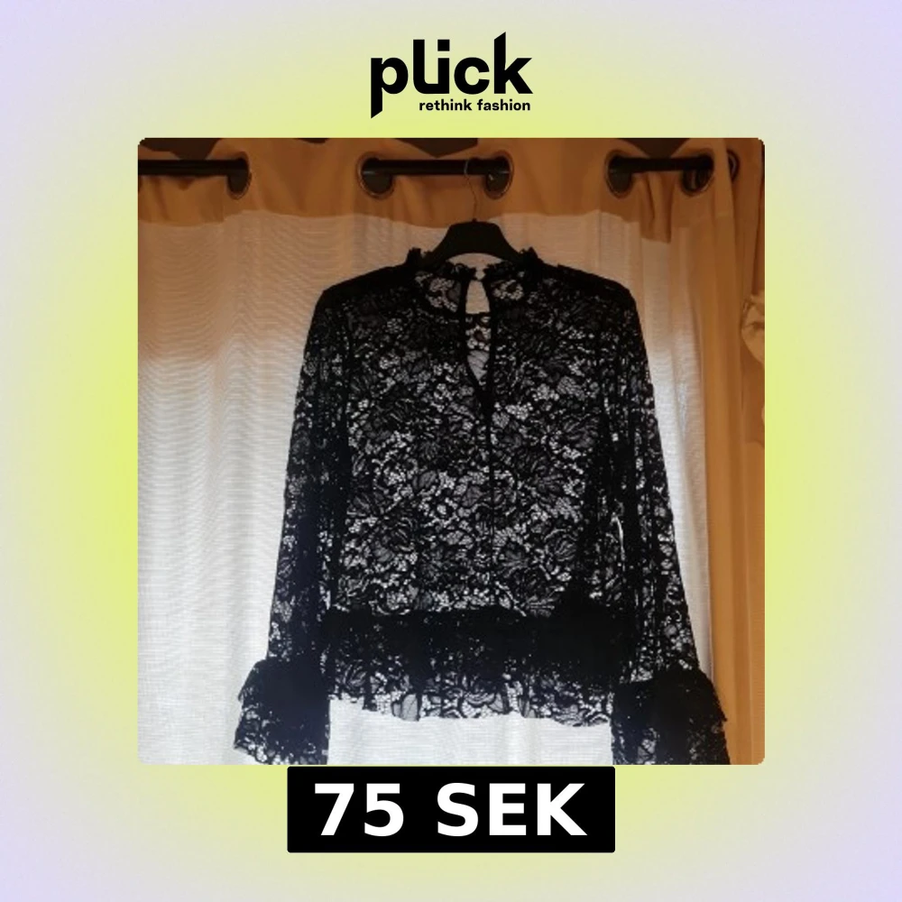 Säljer en svart blus i genombruten spets med lång ärm och volangdetaljer vid ärmslut och nederkant. Blusen har hög hals med liten volang och en snygg öppning bak i nacken. Perfekt för dig som gillar romantisk och edgy stil. Kontakta innan köp och fråga om ni har några frågor eller vill ha fler bilder.
