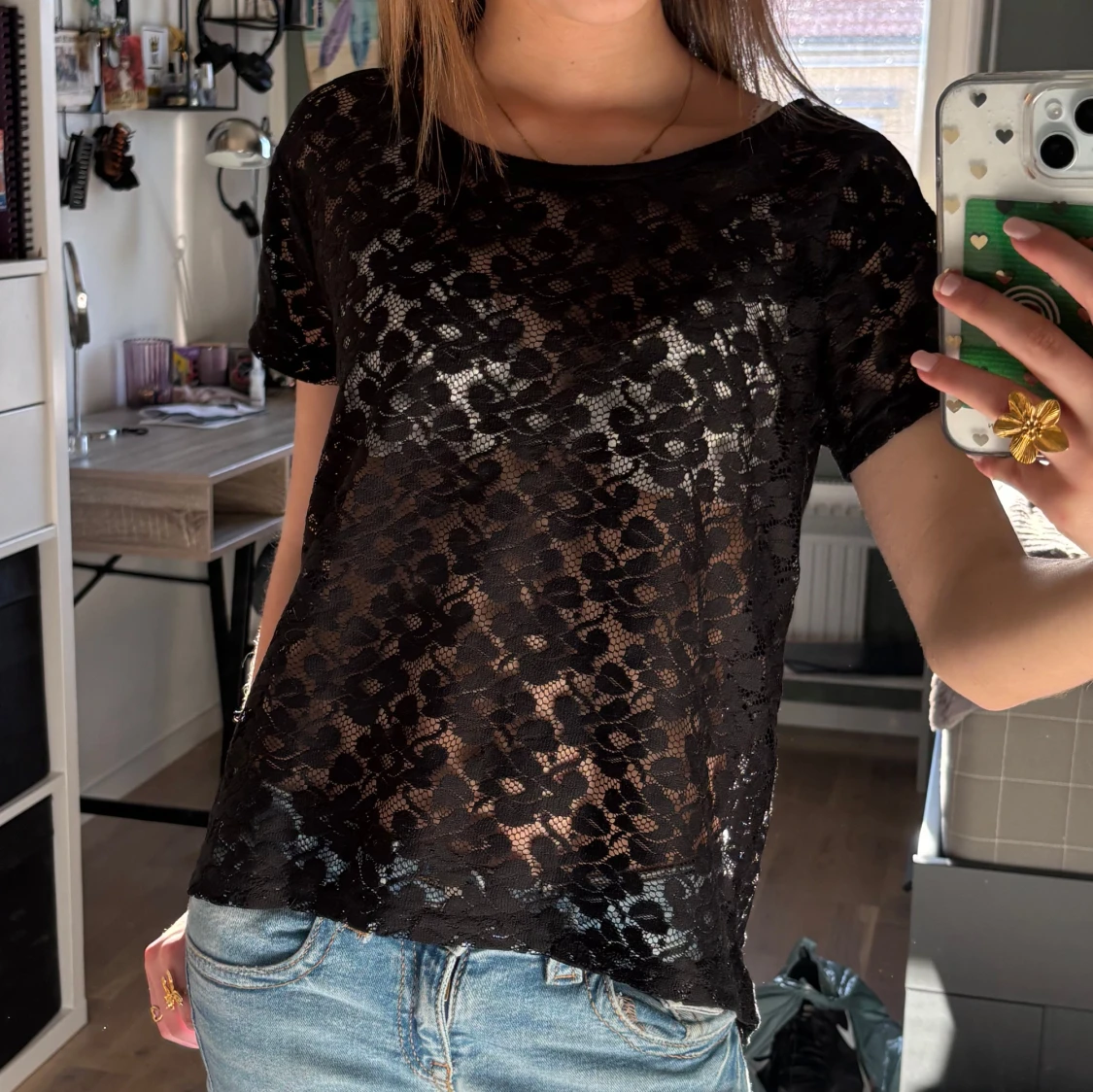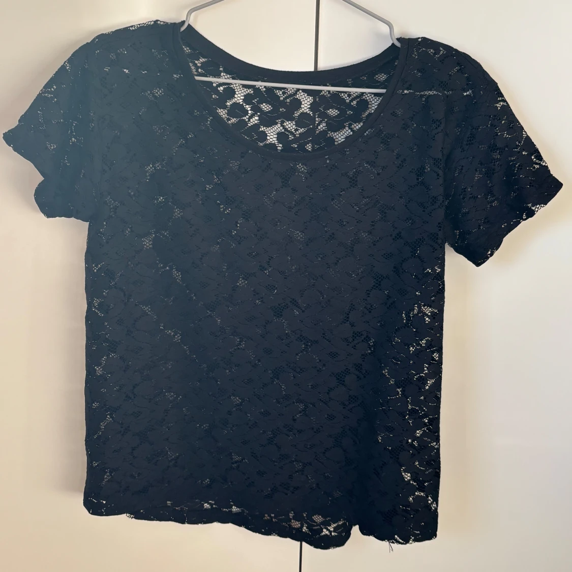 Svart supersnygg spets blus i storlek Sđ Lite genomskinlig men man kan ha linne underđPris kan diskuteras!