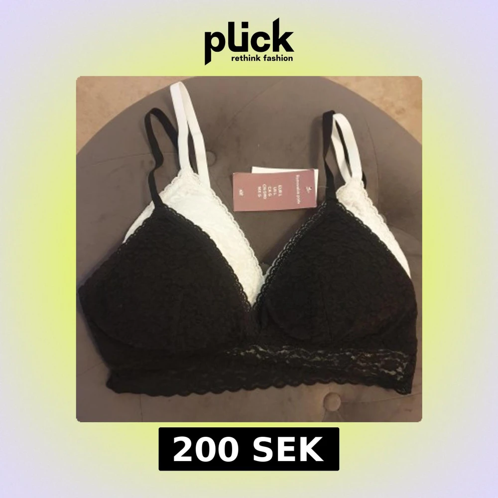 Säljer 2 spetsbralette en vit och en svart med justerbara axelband och matchande trosor. Braletten har en vacker spetsdesign och trosorna har spetsdetaljer längs kanterna. Perfekt för en sexig och bekväm look. Nytt med lappar på.