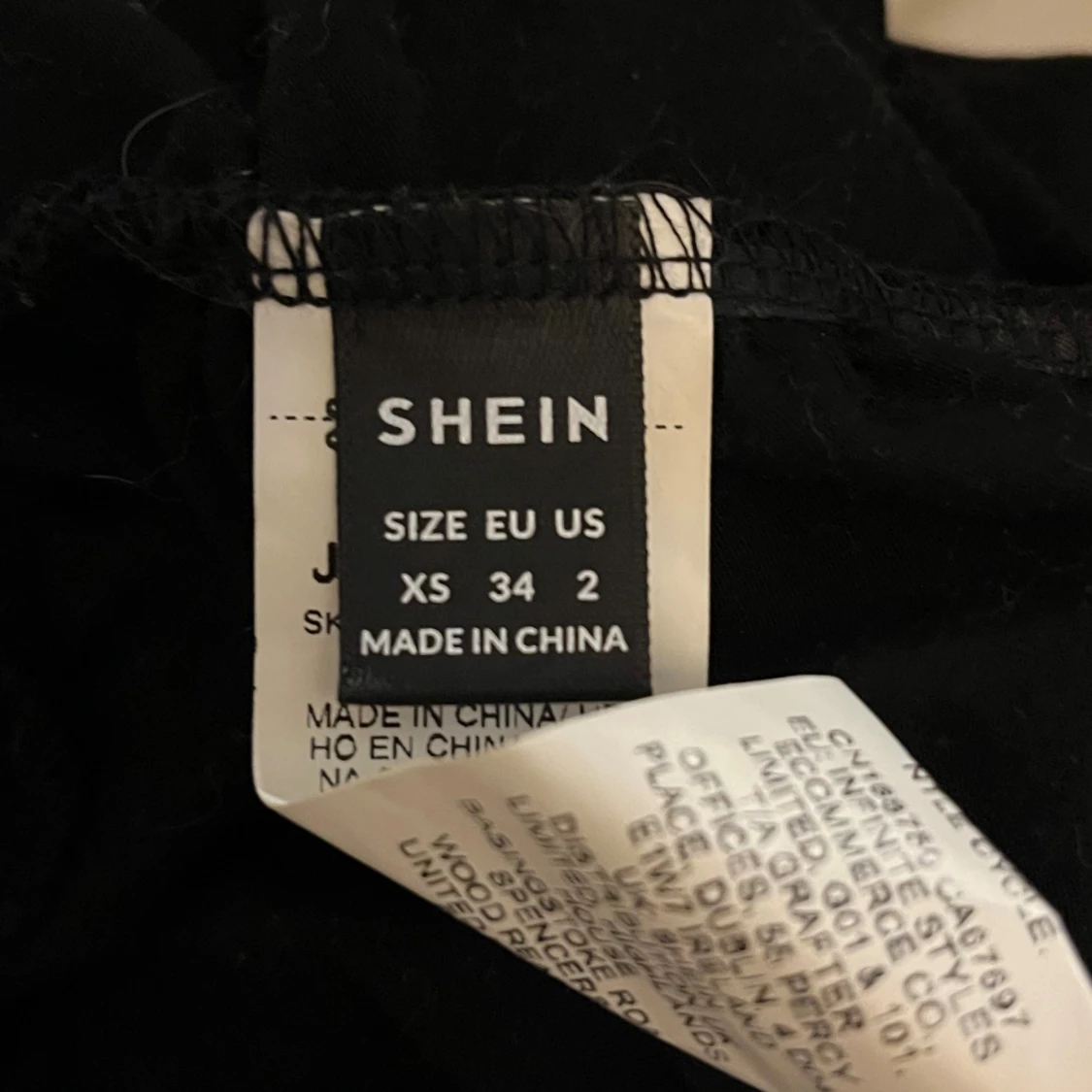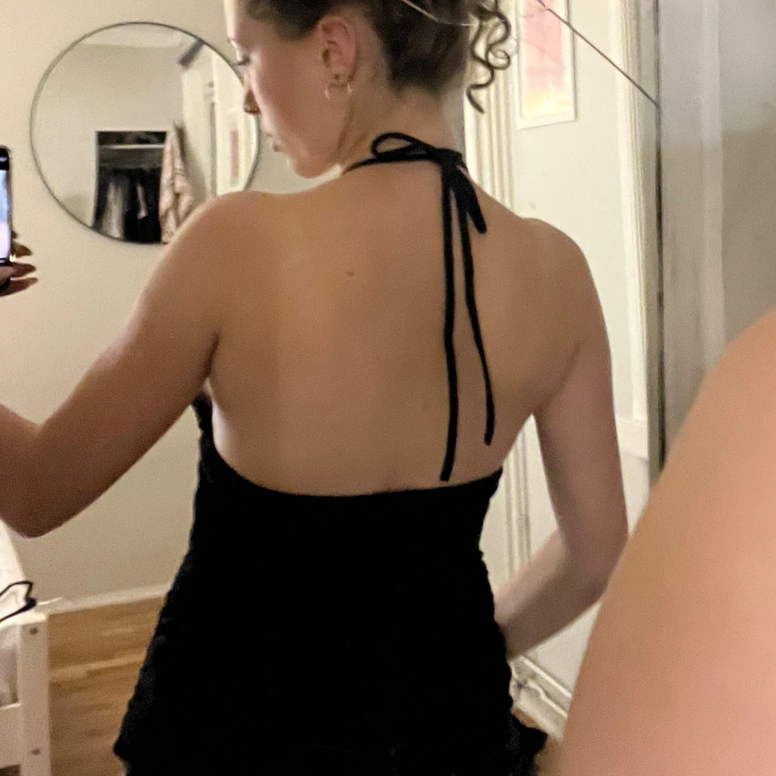 Svart spettslinne från SHEIN i xs med tunna axelband som knyts i nacken. Väldigt skönt också med öppen rygg!