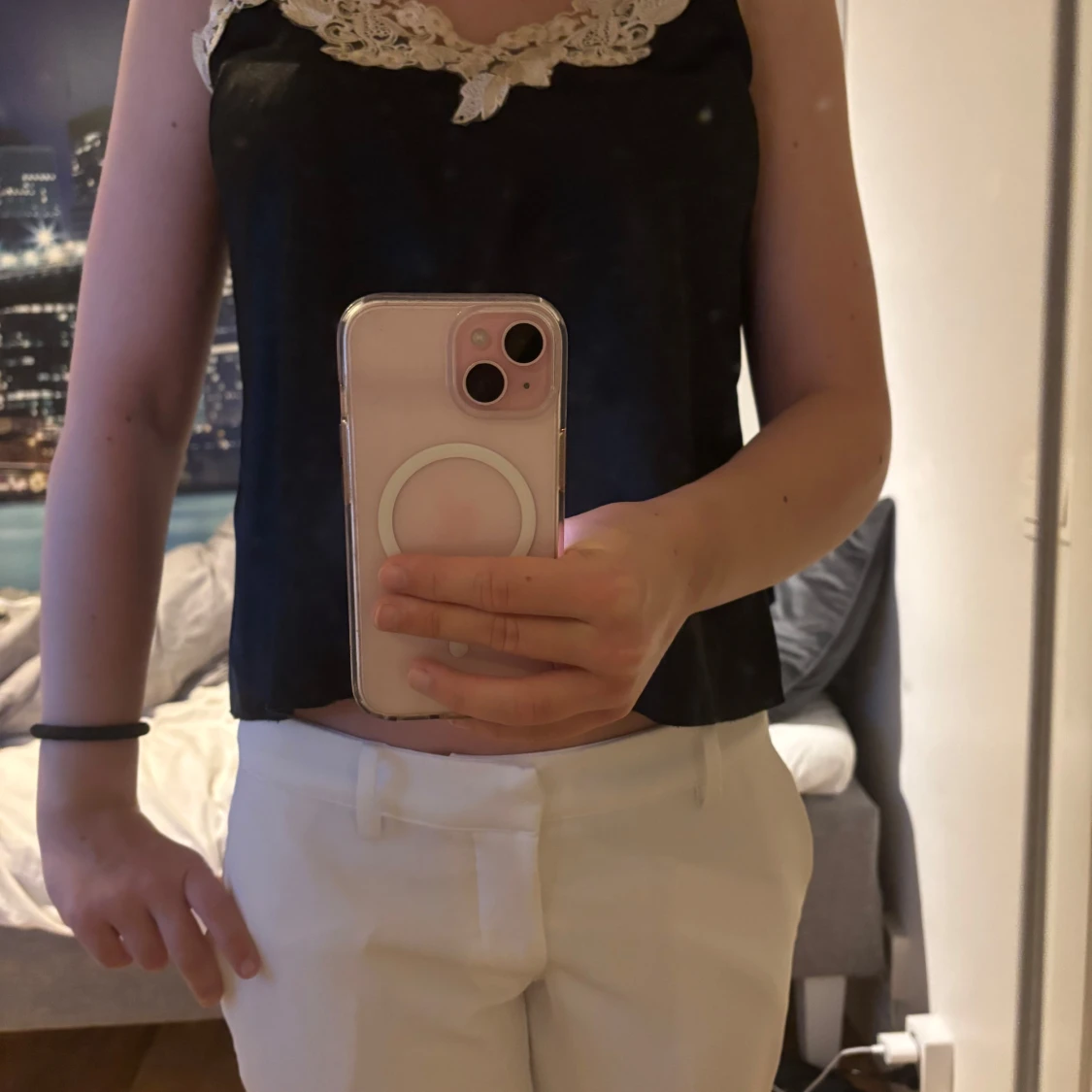 Säljer ett svart spetslinne, finns varken märke eller storlek på den men skulle säga att den är storlek S!