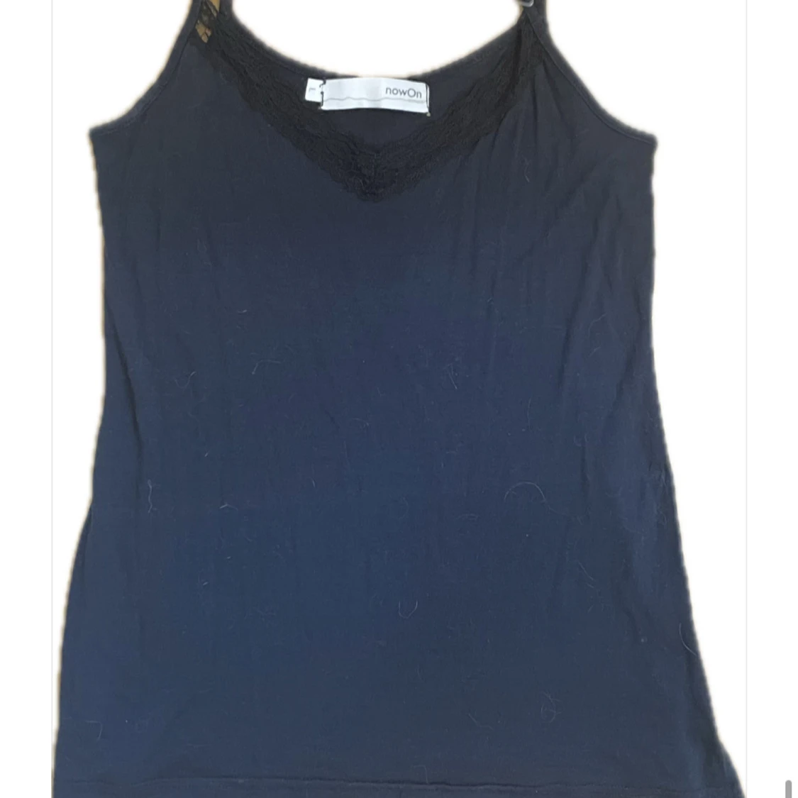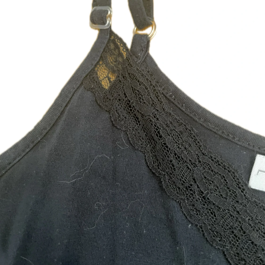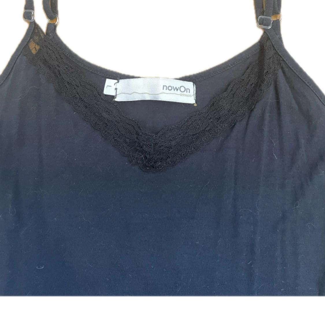 Svart linne med spets från nowOn med smala, justerbara axelband och v-ringning dekorerad med fin spets. Perfekt nu i sommar!