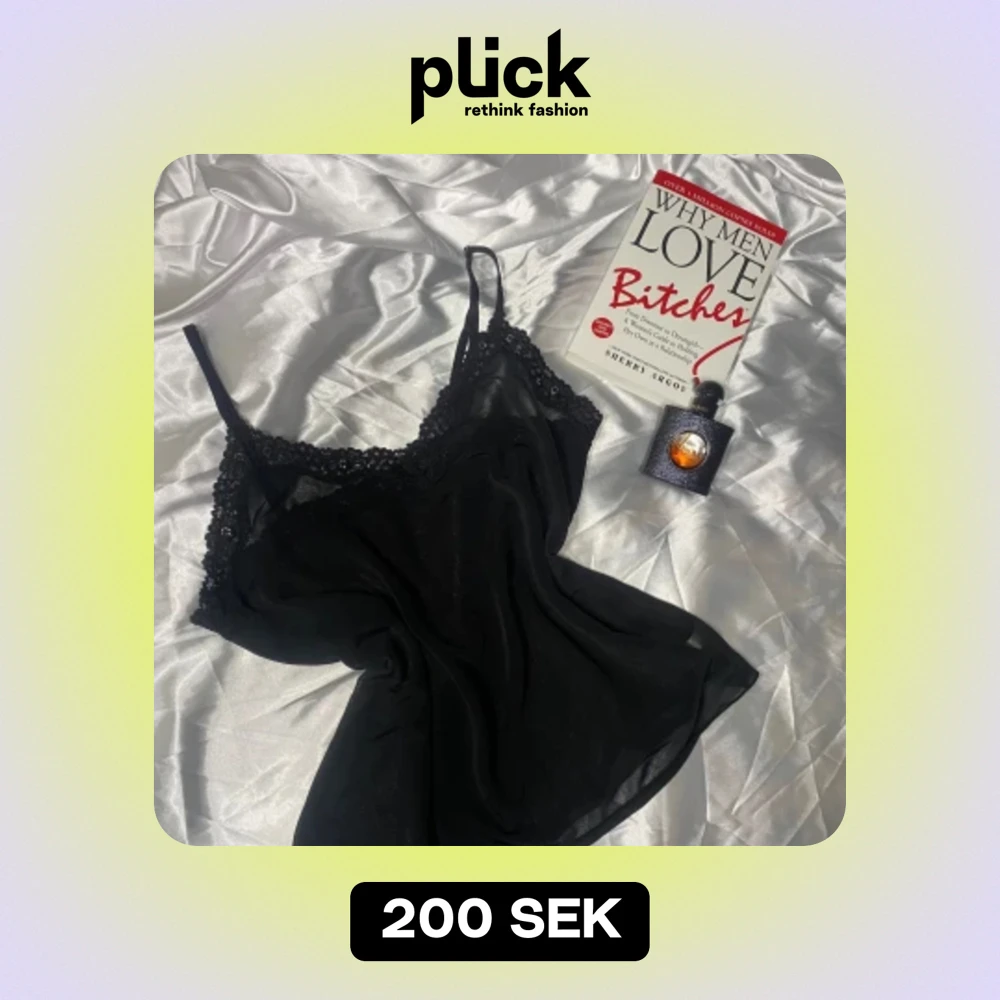Säljer ett svart spetslinne i storlek M. Linnet har smala axelband och är gjort av ett lätt genomskinligt material med spetsdetaljer runt halsringningen och axelbanden. axelband är justerbara. Perfekt för en festlig kväll eller en mysig hemmakväll. Helt ny aldrig använd.