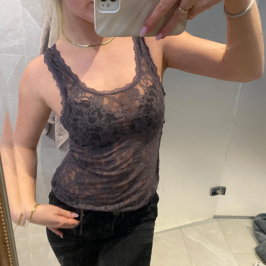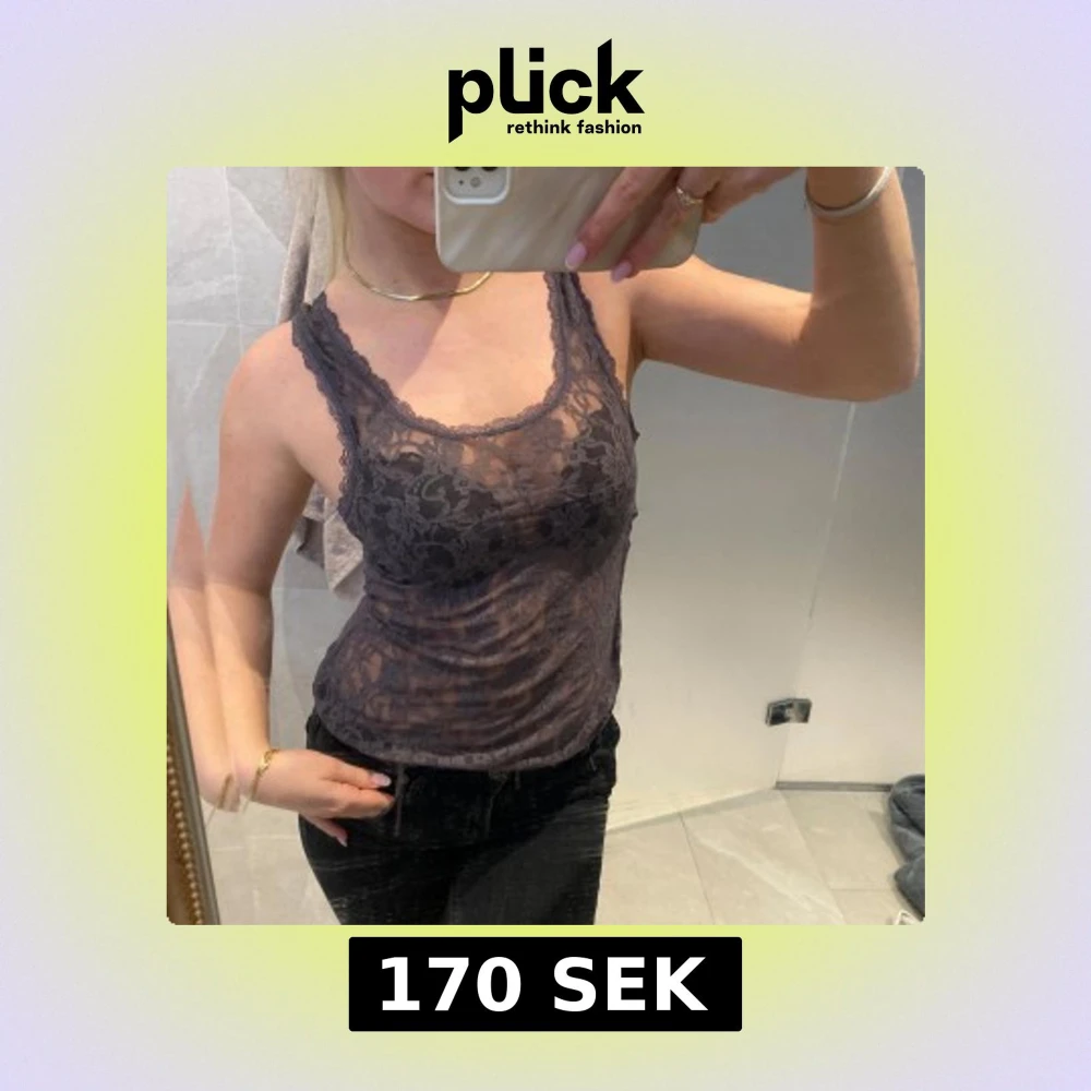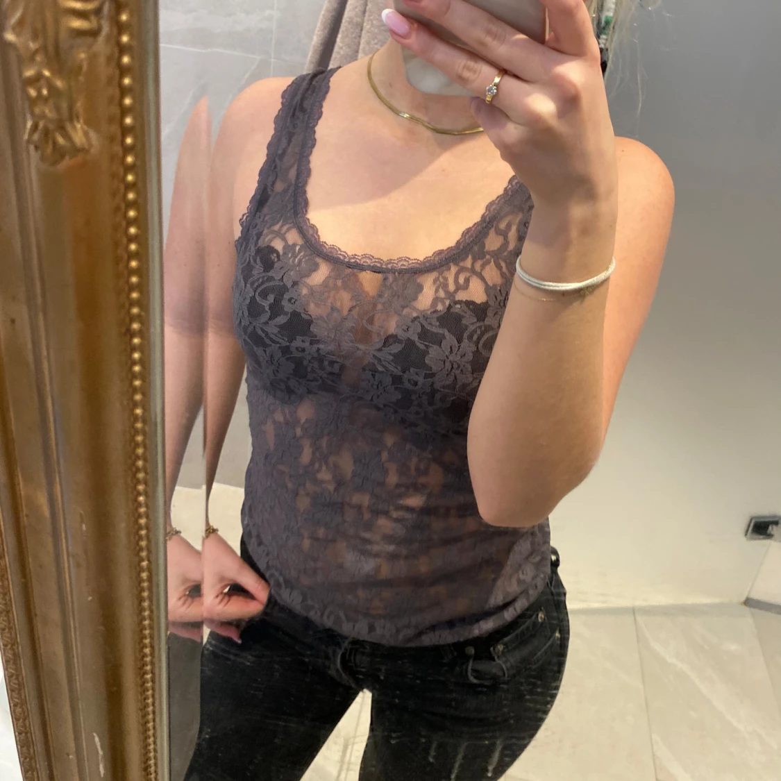 Snyggt svart spetslinne med blommigt mönster och smala axelband. Perfekt för en stilren och elegant look.