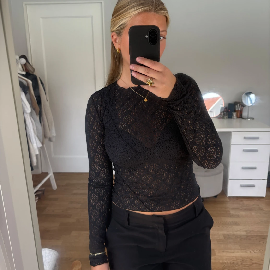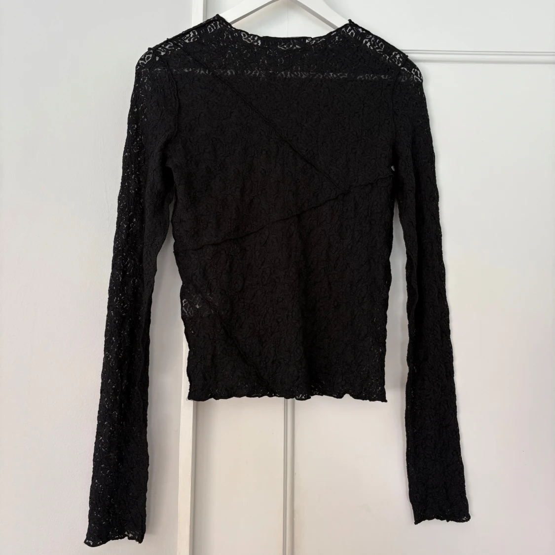 Svart långärmad spetstopp i fint mönster. Toppen är från bikbok i storlek s. Aldrig använd, endast testad.