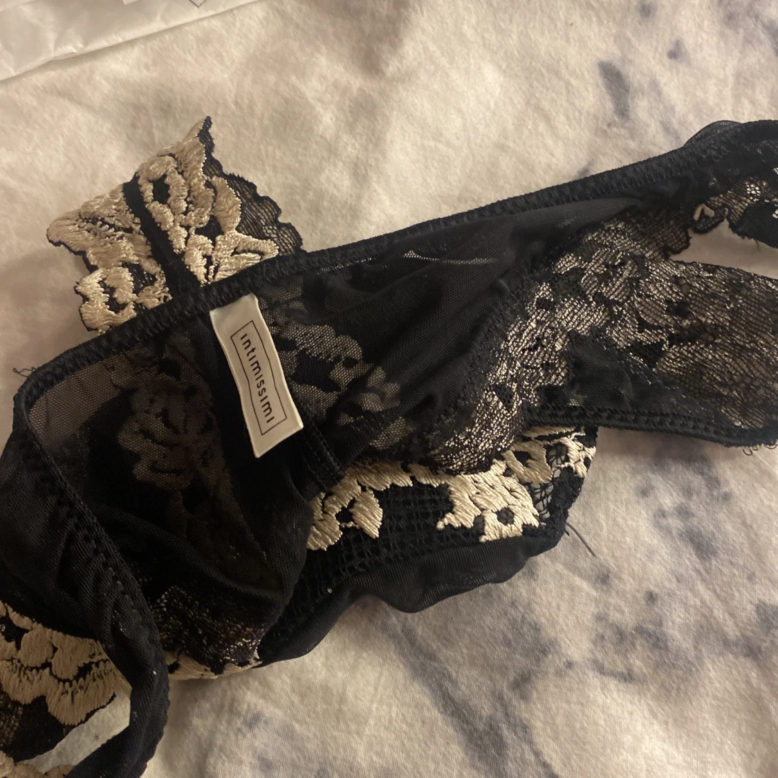 Har inte användts en enda gång Säljer ett par eleganta svarta underkläder från Intimissimi med vacker spetsdetalj i beige. Perfekt för att känna sig extra lyxig och bekväm. Kommer i originalförpackning.