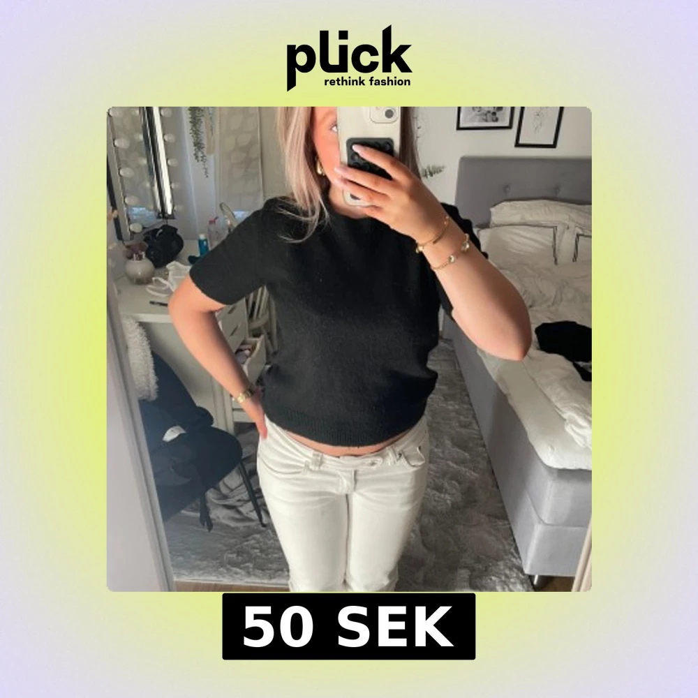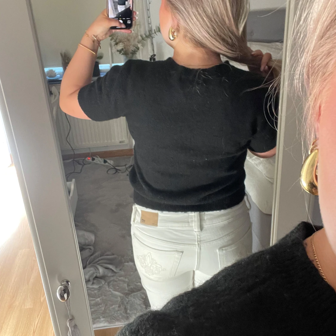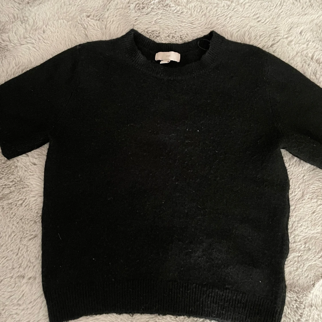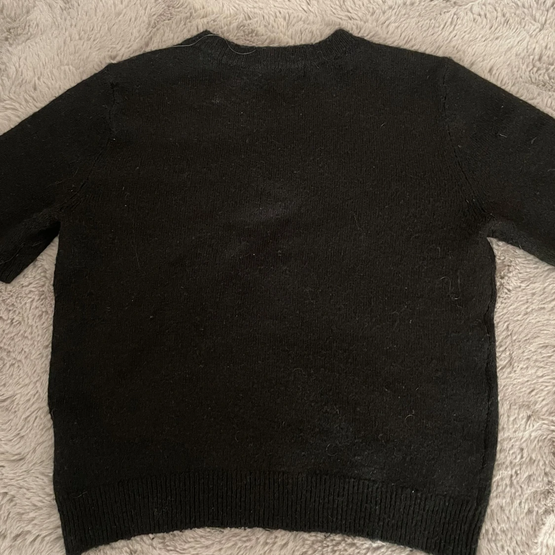En svart stickad topp med korta ärmar och rund hals. Modellen är något croppad och har ribbade kanter vid ärmslut och nederkant. Perfekt för dig som gillar en enkel och stilren look med en mysig känsla.