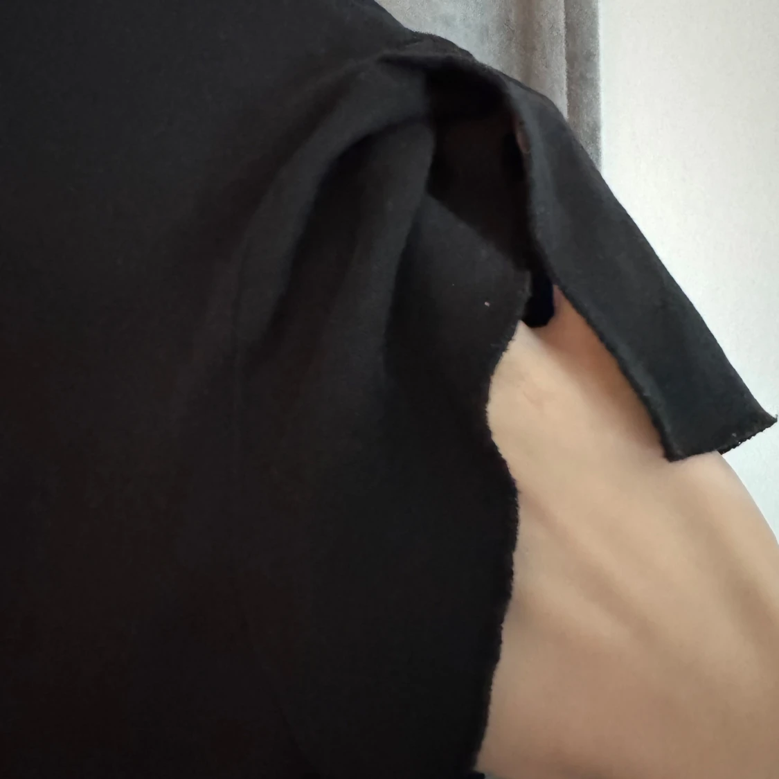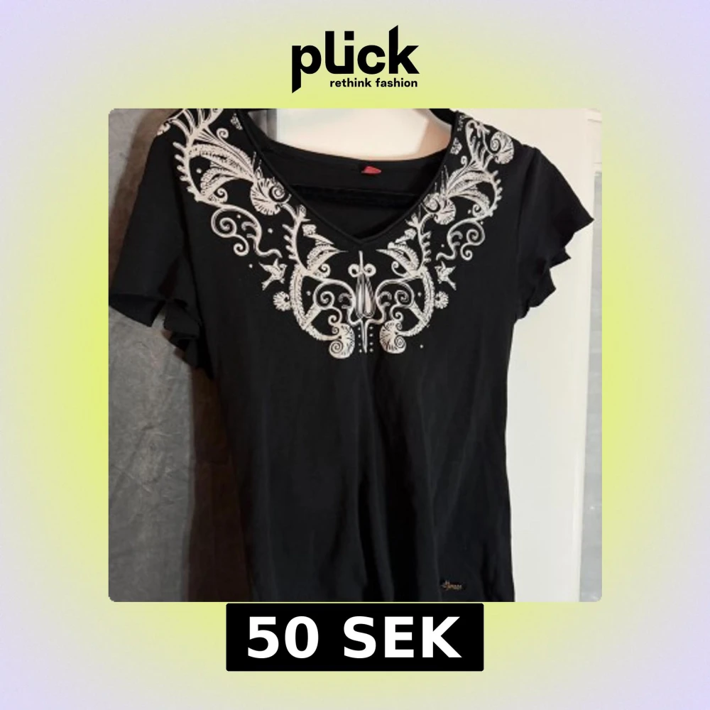 !LÄS BIO INNAN KÖP! Svart V-ringad t-shirt med med vita detaljer runt halsringningen. T-shirten har korta ärmar och har ”cuts” (se bild 2) vid axlarna som tillhör designen. Om fler bilder önskas hör av er!
