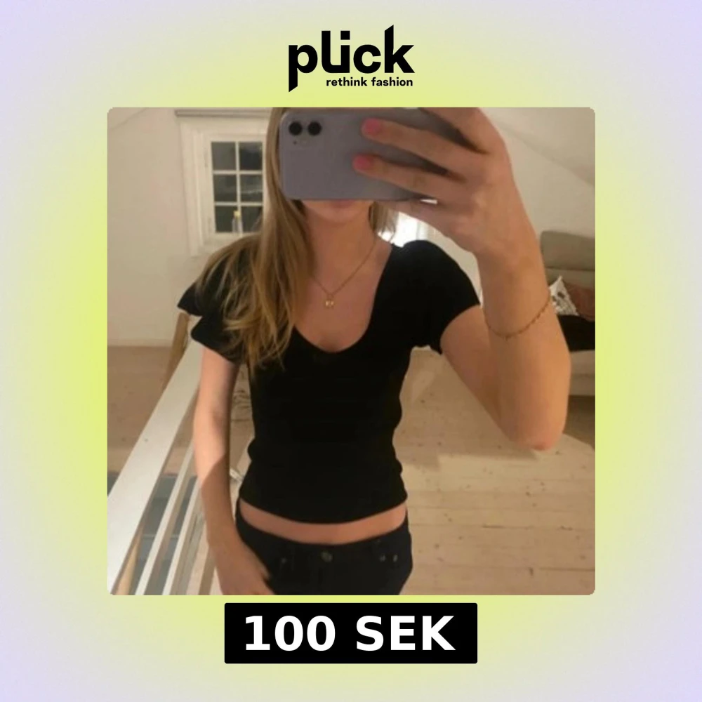 En svart, tight topp med korta ärmar och djup v-ringning. Har för mig att den är från Vila! Lånade bilder💓