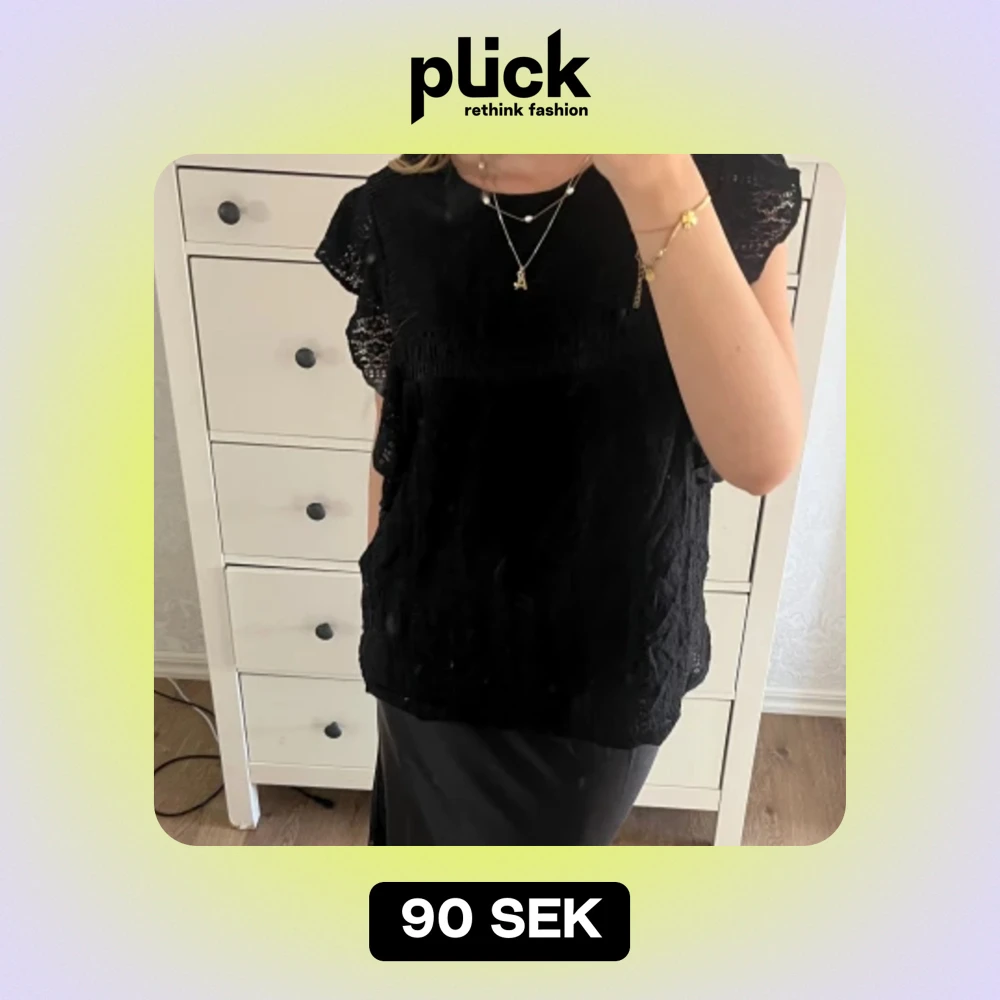 Jag säljer en svart topp med lite spets. Toppen har fina armar med lite som volanger. Toppen är i fint sick och knappt använd. Säljer för att den inte kommer till någon användning😇