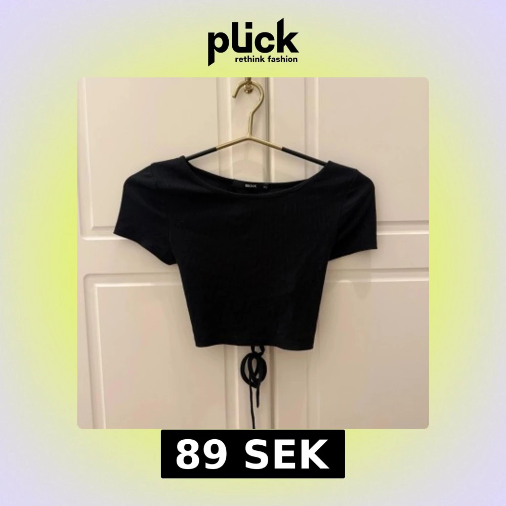 Svart crop top med snörning i ryggen från Bik Bok. Kortärmad modell med rund halsringning. Storlek XS.
