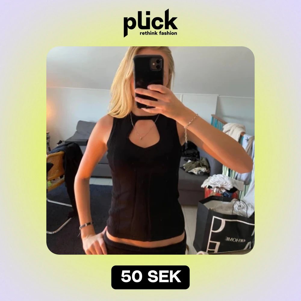 Svart topp med superfina detaljer. Skönt material! Står storlek M men skulle säga att den passar allt mellan xs-m.