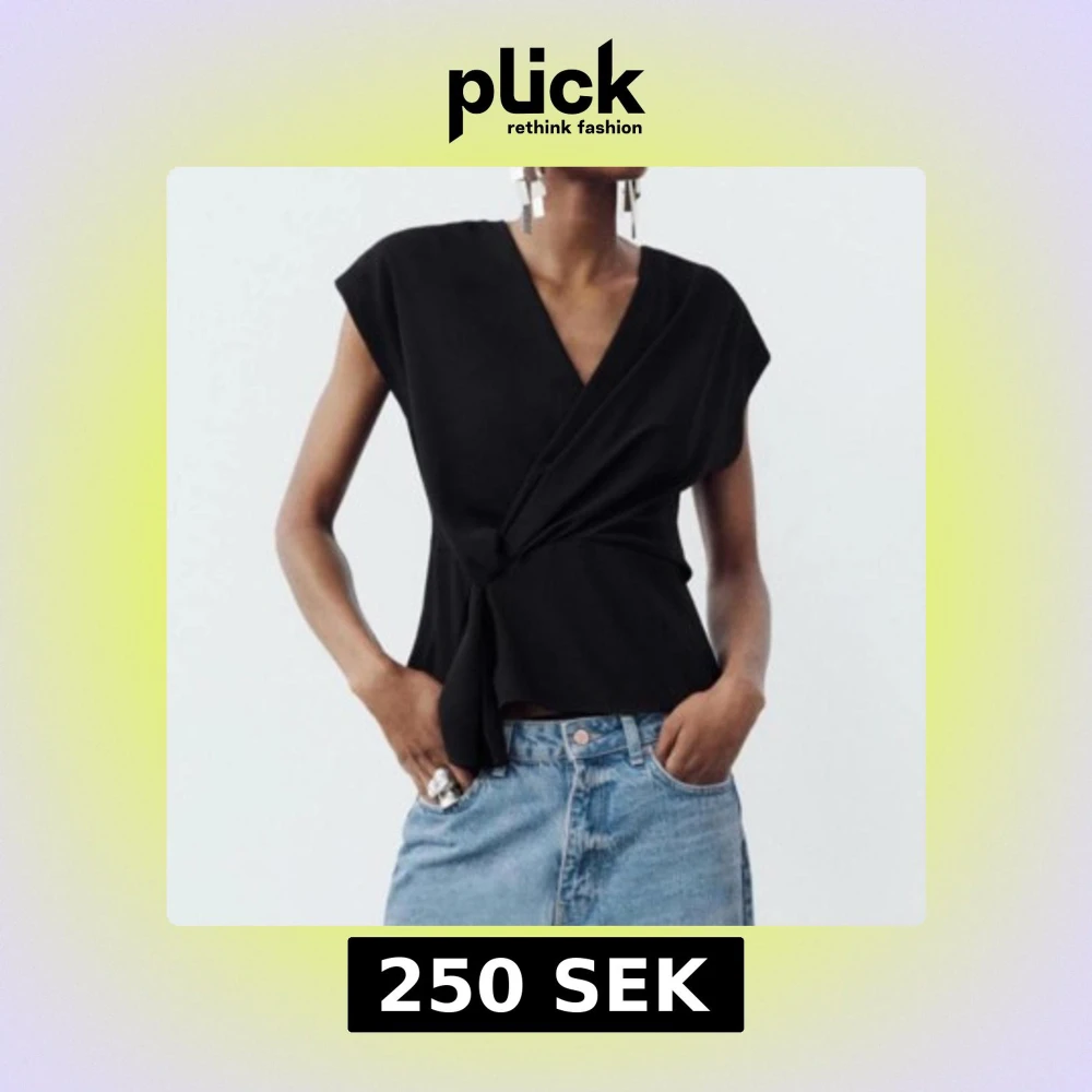 Snygg svart omlottopp med knyt i sidan från zara. Enkel men stilren design som passar till många tillfällen.💕 Välj INTE instabox!