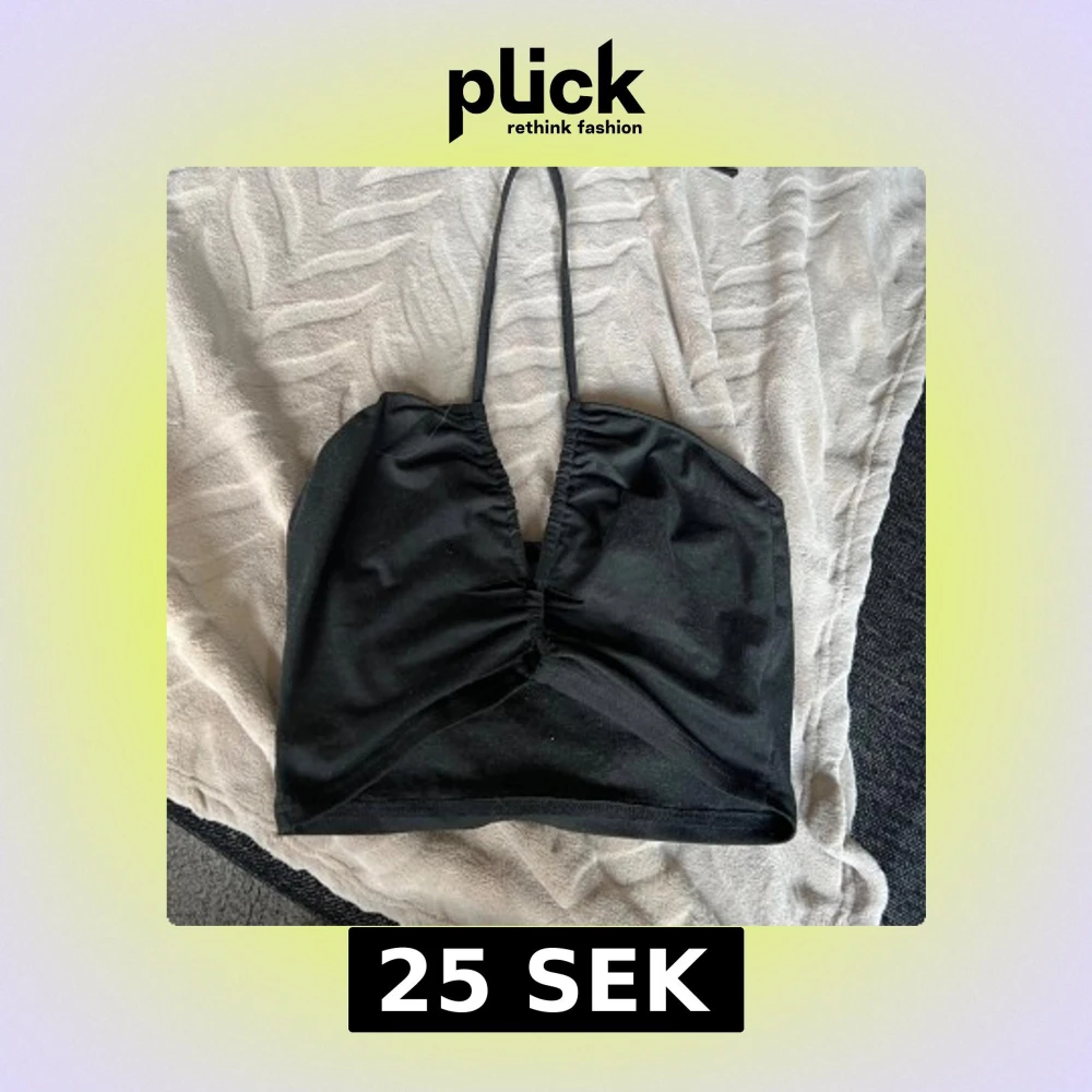 Säljer en svart topp från SHEIN i storlek M. Toppen har smala band som knyts i nacken, toppen har en v-ringning vid brösten och är i mjukt och stretchigt material .