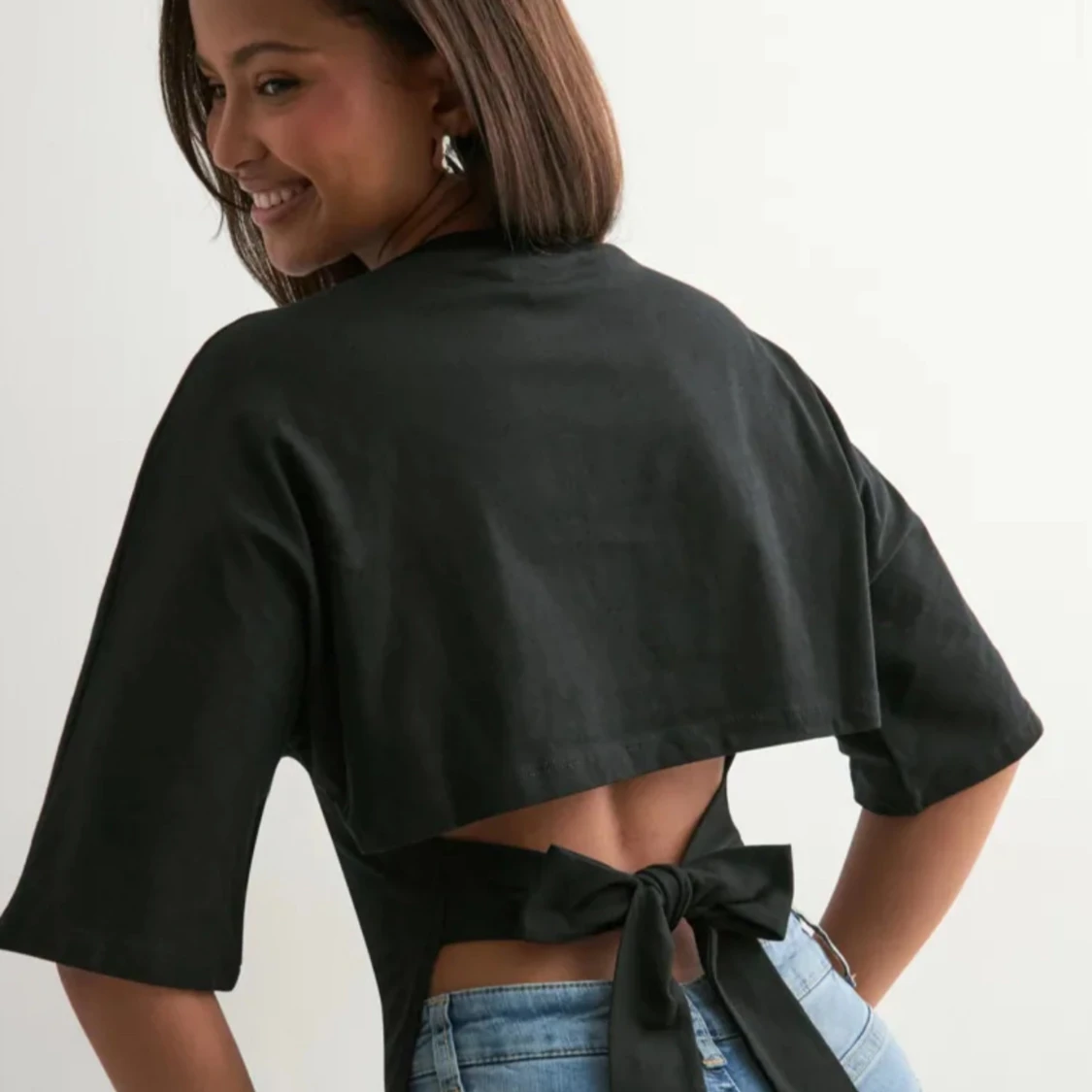 Säljer trendig svart topp från Nelly som man knyter i ryggen