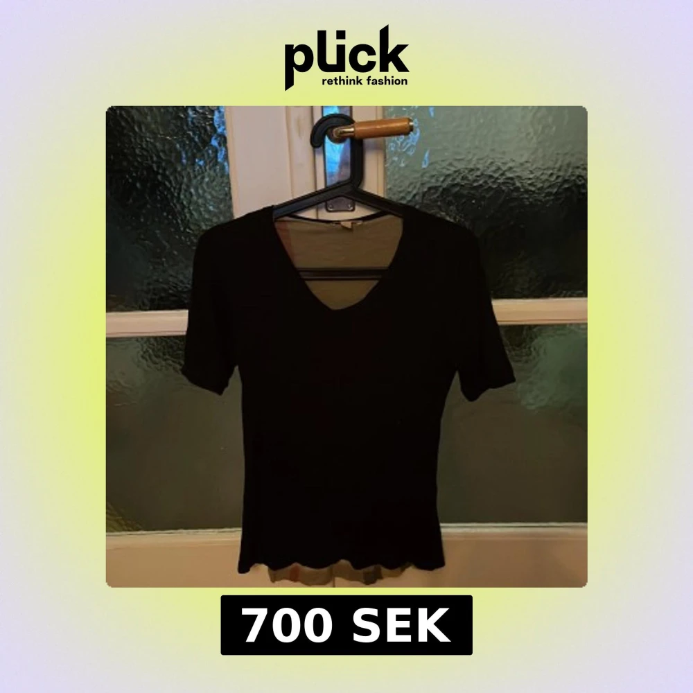 Säljer en stilren svart topp från Burberry Brit. Toppen har en v-ringad design och korta ärmar, perfekt för en elegant look. Materialet är mjukt och bekvämt.