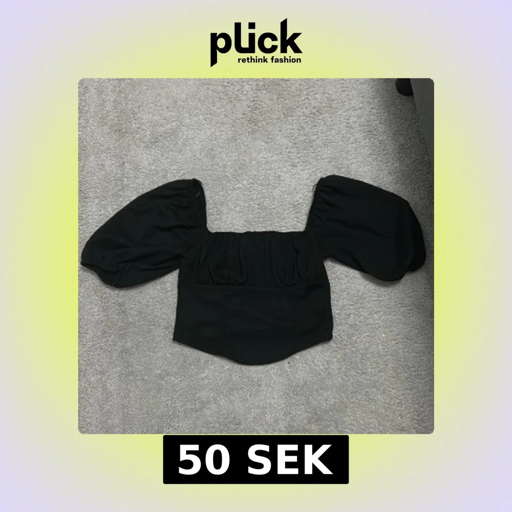 Snygg svart topp från Gina Tricot med puffiga ärmar och en fyrkantig urringning. Perfekt för en stilren look.