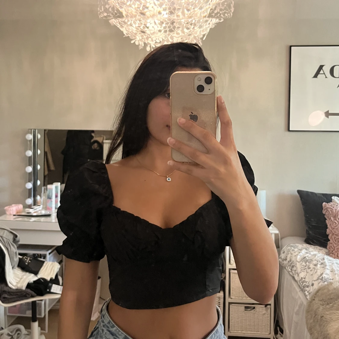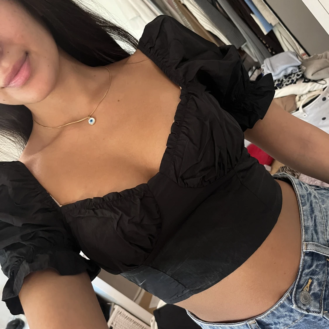 En söt topp med ballongärmar köpt från H&M. Aldrig använd, endast testad. Storlek 36, men hade rekommenderat till någon som har 34 då den är liten i storleken