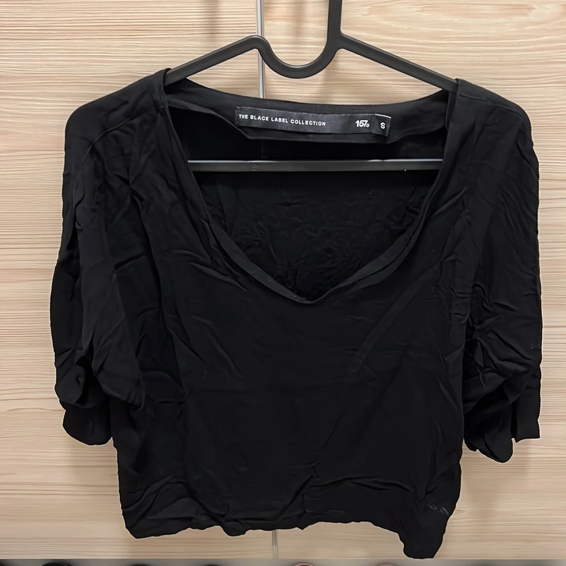Snygg svart topp från Lager 157 i storlek S. Den har en v-ringad design och korta ärmar. Toppen är i bra skick.